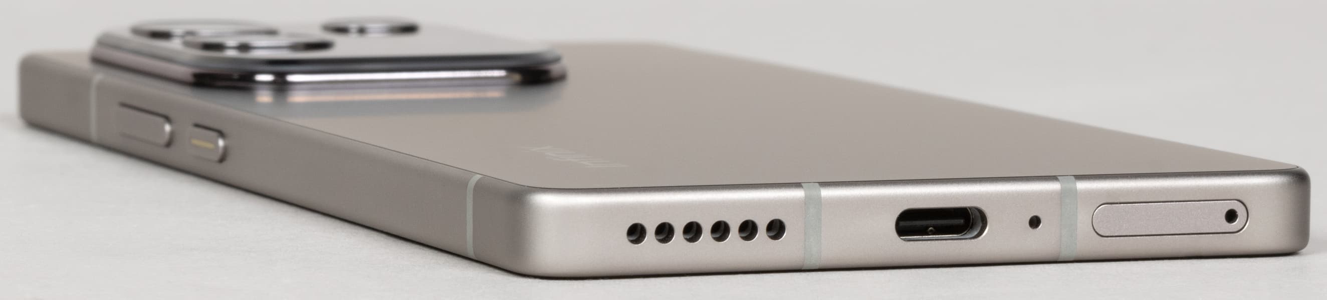 Нижний торец содержит разговорный микрофон, динамик и разъем USB Type-C.
