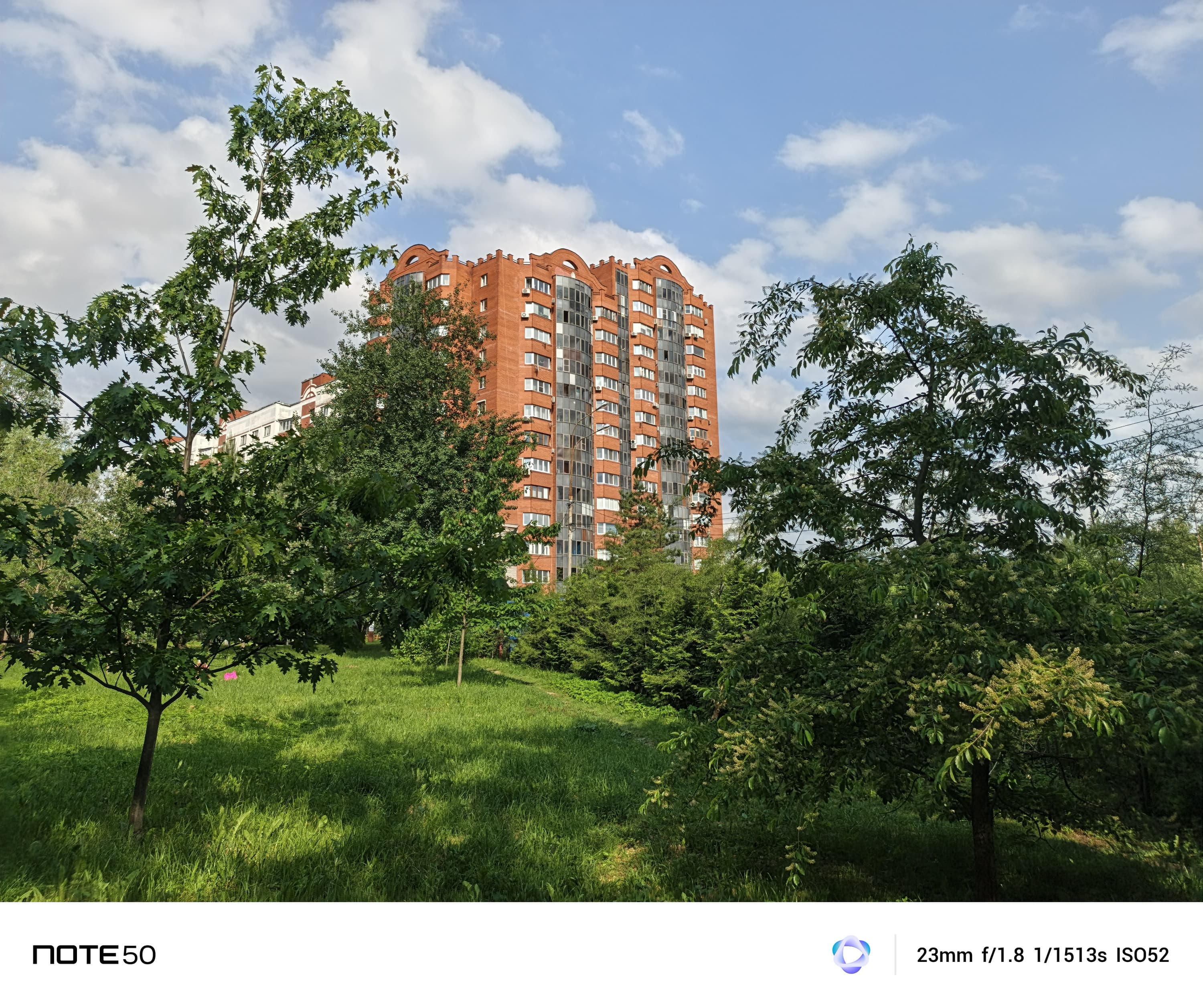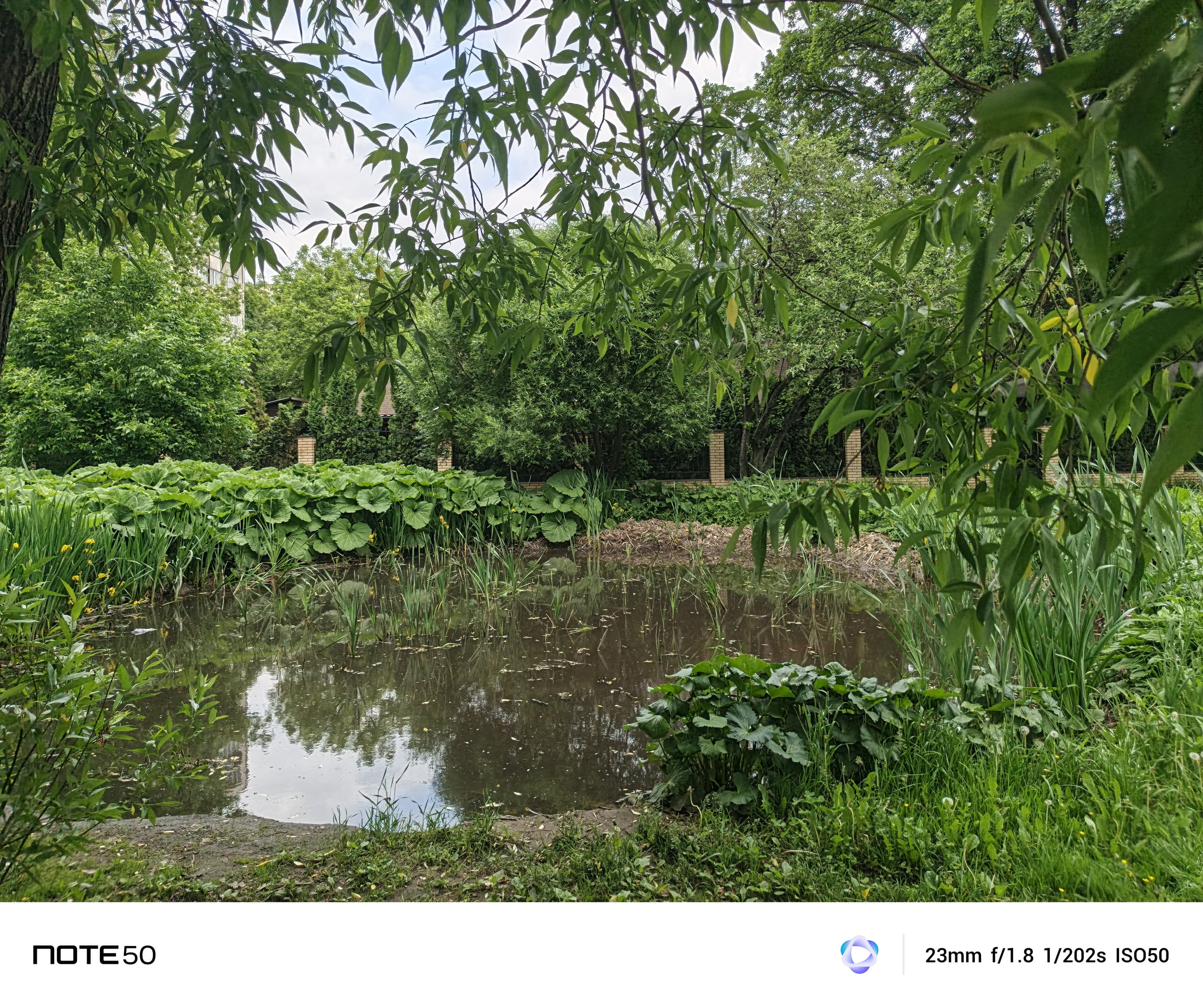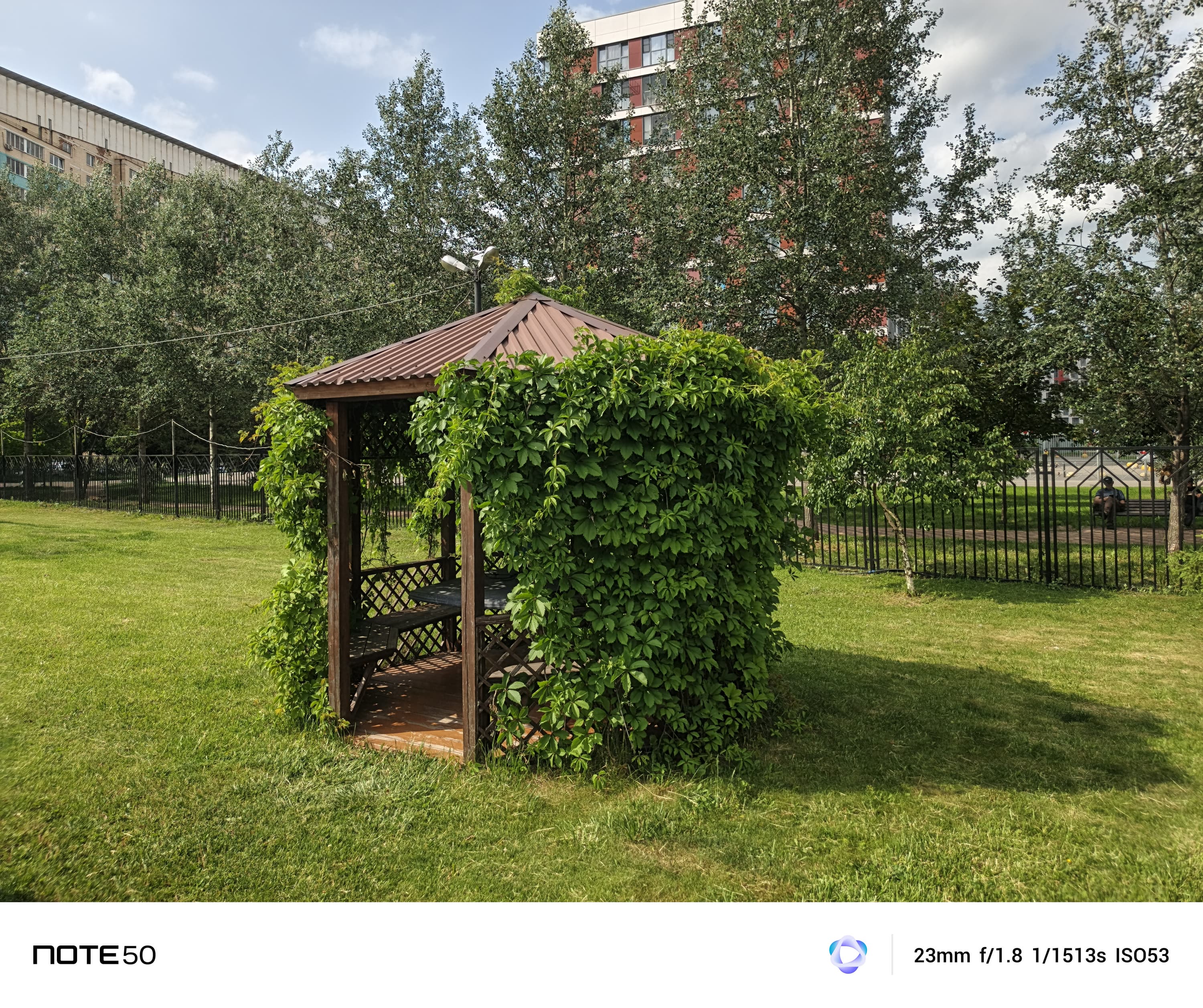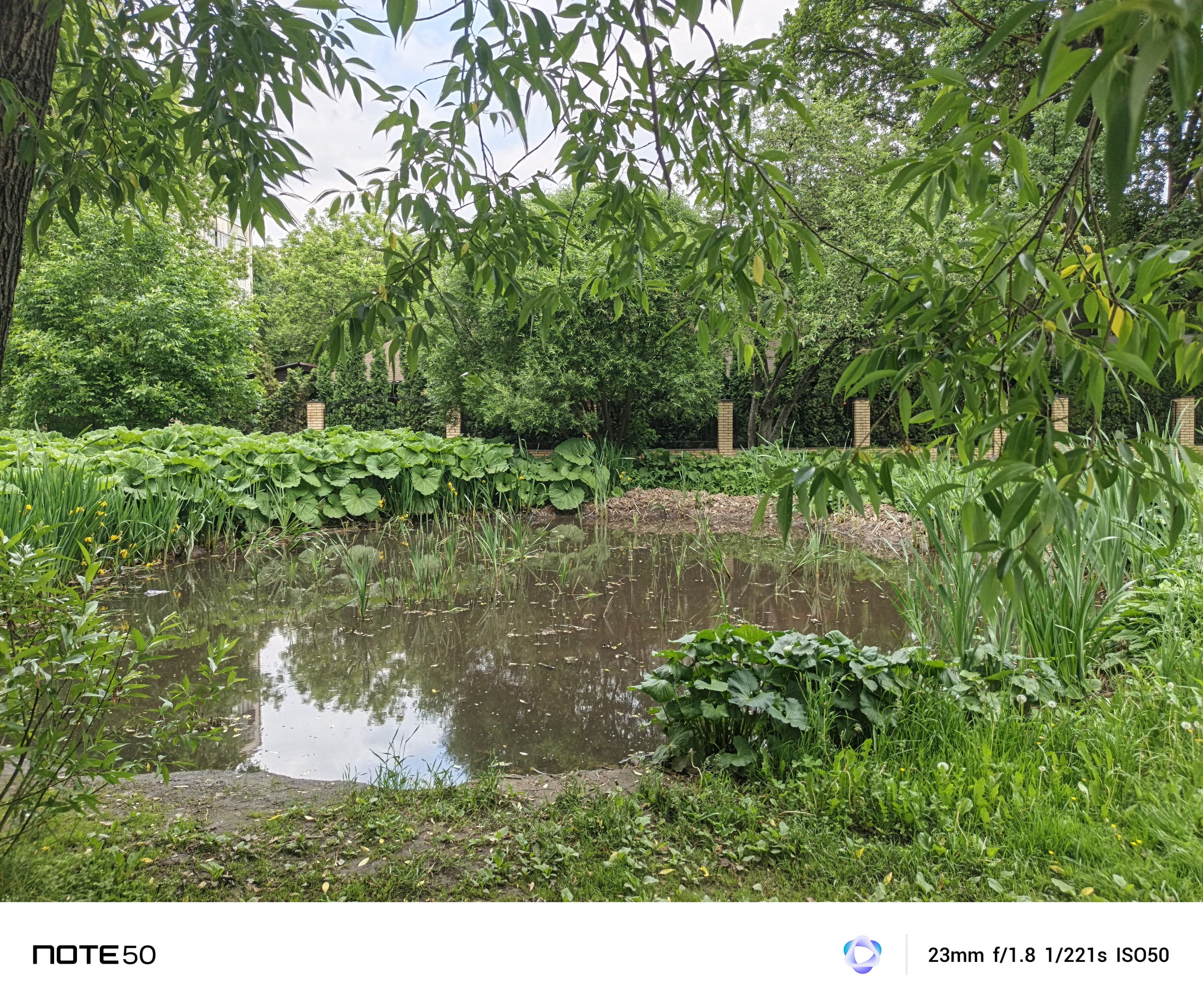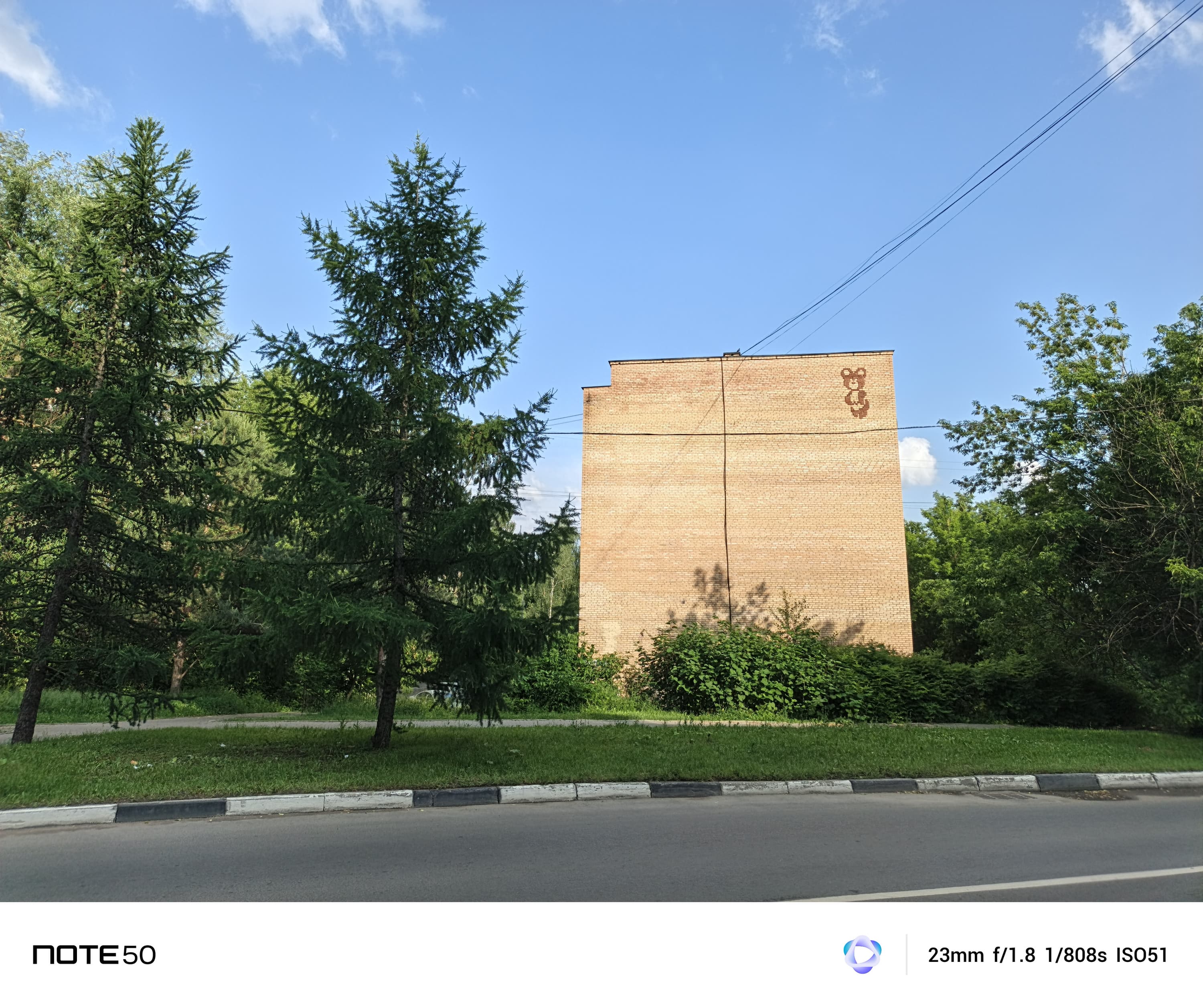 Несмотря на всю «солидность» блока камер на спинке смартфона, Infinix Note 50 оснащен лишь одной снимающей тыльной камерой (и вспомогательным 2-мегапиксельным сенсором). Камера имеет фазовый автофокус и оптический стабилизатор, ее характеристики таковы: 50 Мп, 1/1,57″, 1,0 мкм, f/1,9. Возможности отключить «рамку» вокруг фотографии мы в нашем экземпляре не обнаружили.