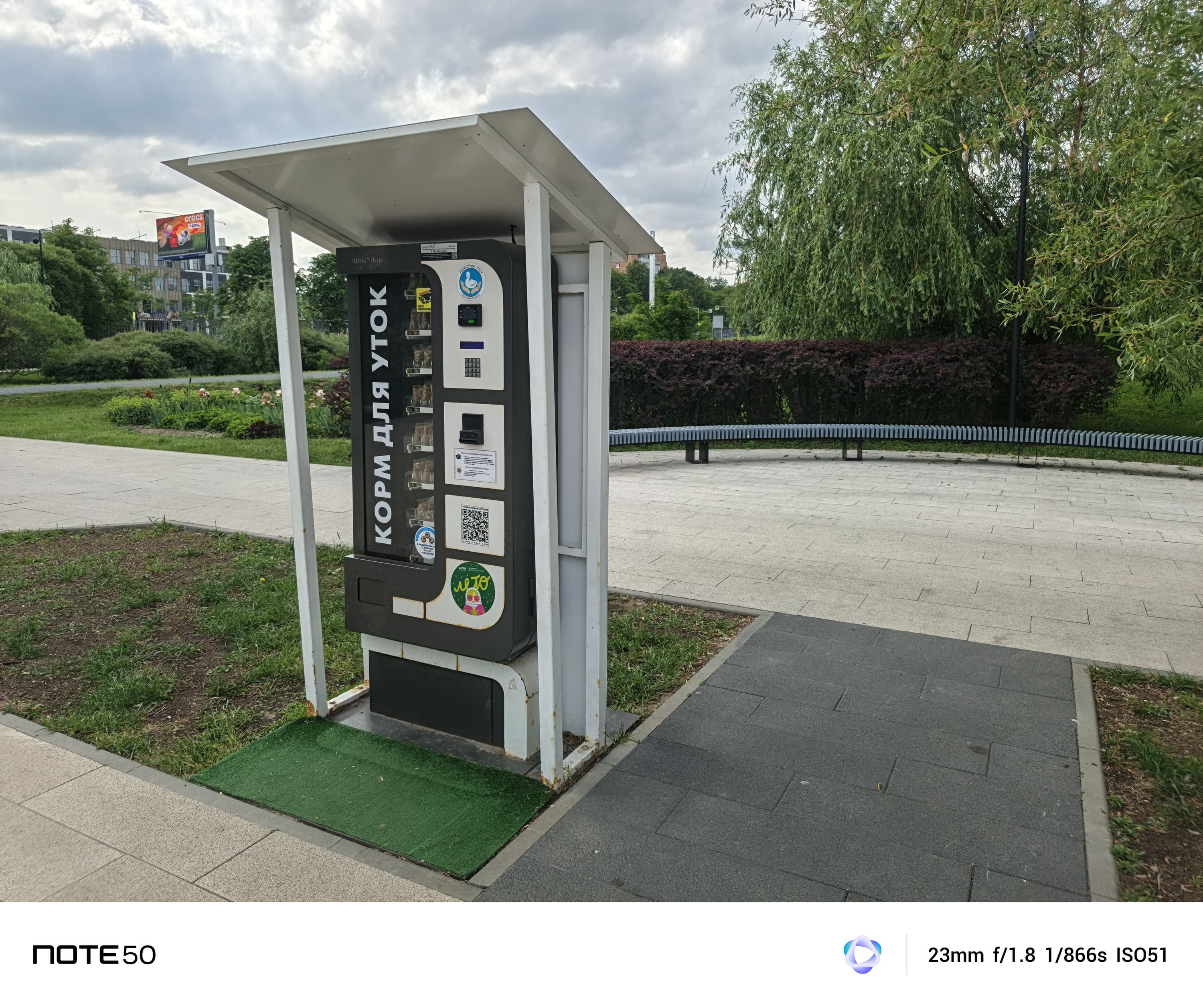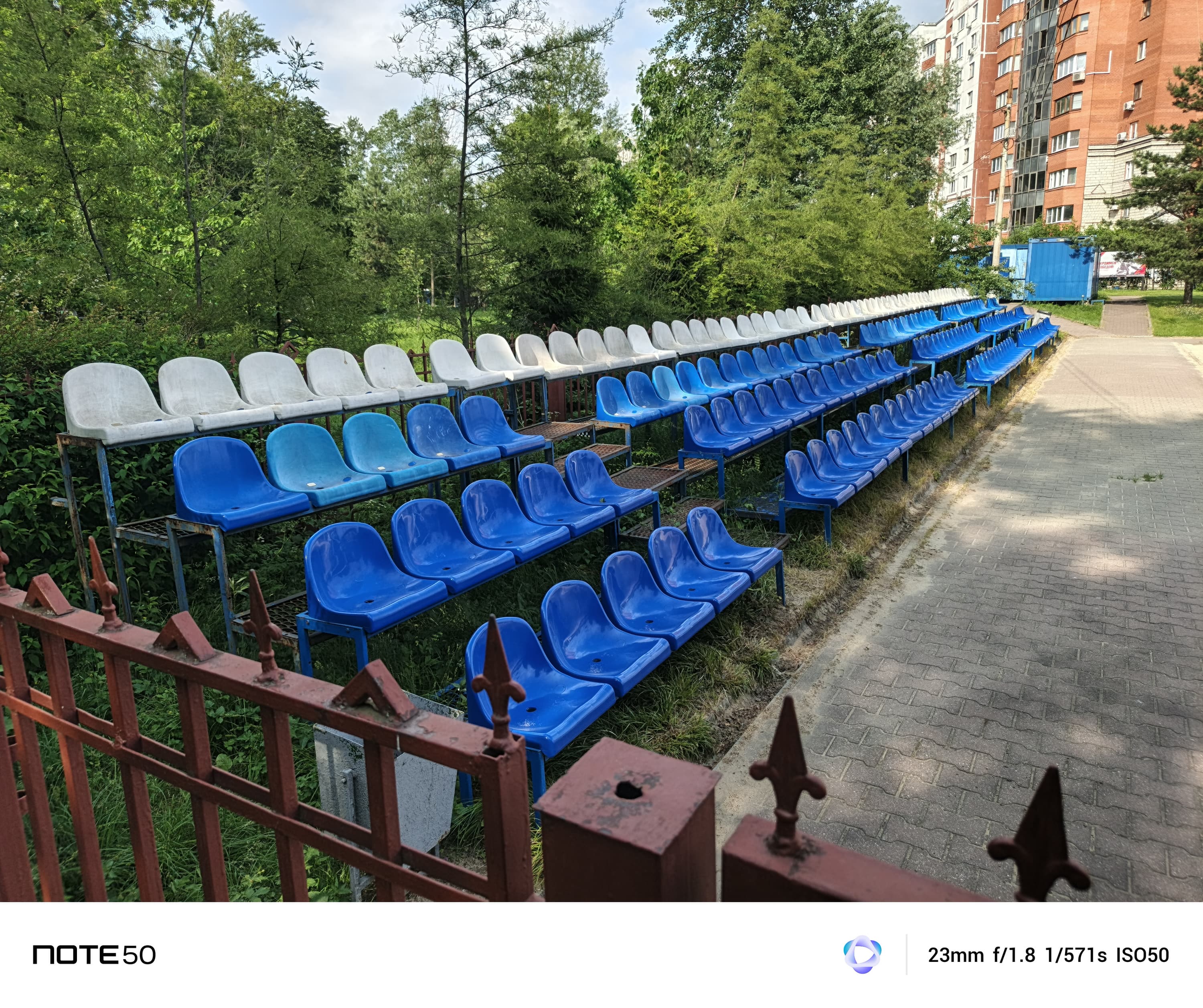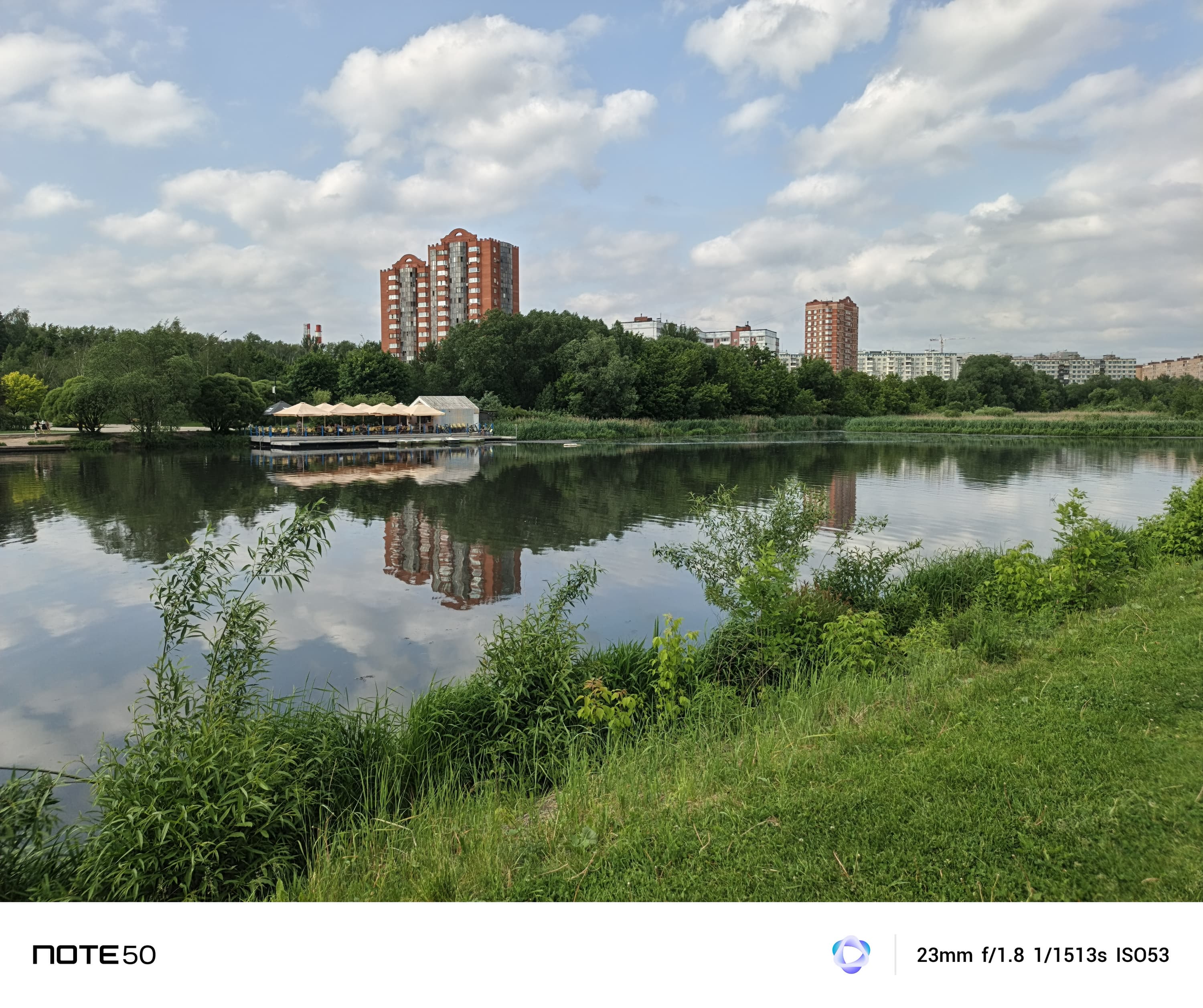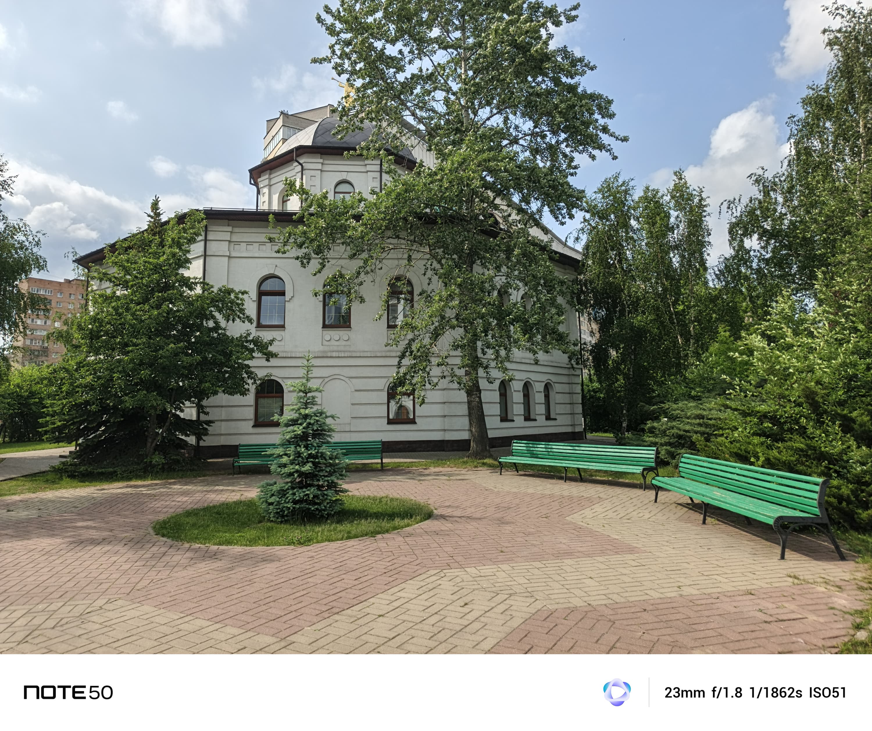 Несмотря на всю «солидность» блока камер на спинке смартфона, Infinix Note 50 оснащен лишь одной снимающей тыльной камерой (и вспомогательным 2-мегапиксельным сенсором). Камера имеет фазовый автофокус и оптический стабилизатор, ее характеристики таковы: 50 Мп, 1/1,57″, 1,0 мкм, f/1,9. Возможности отключить «рамку» вокруг фотографии мы в нашем экземпляре не обнаружили.