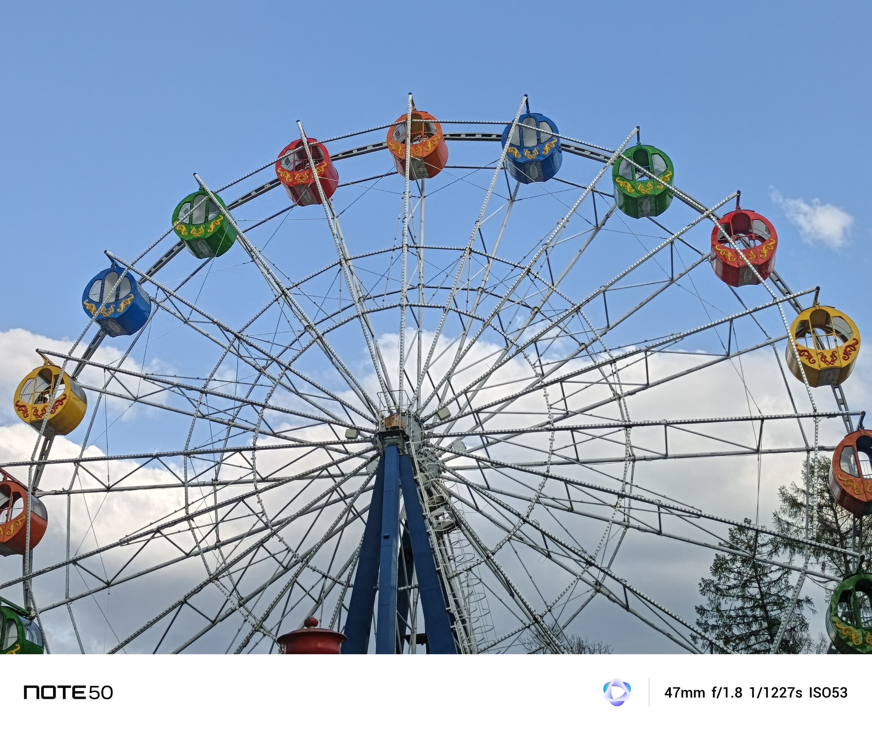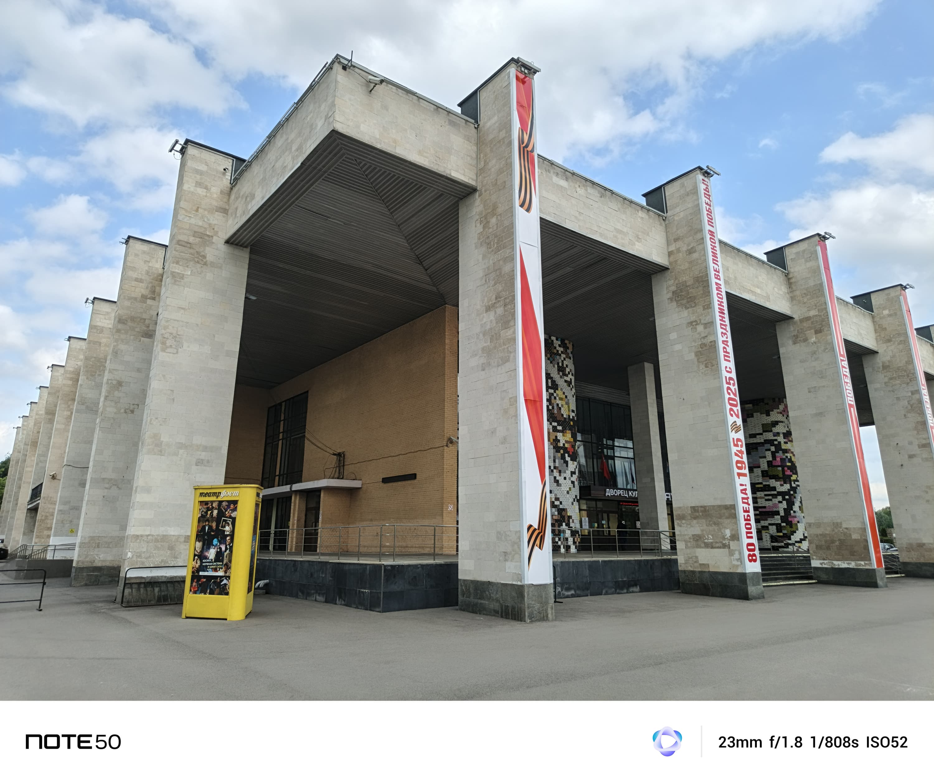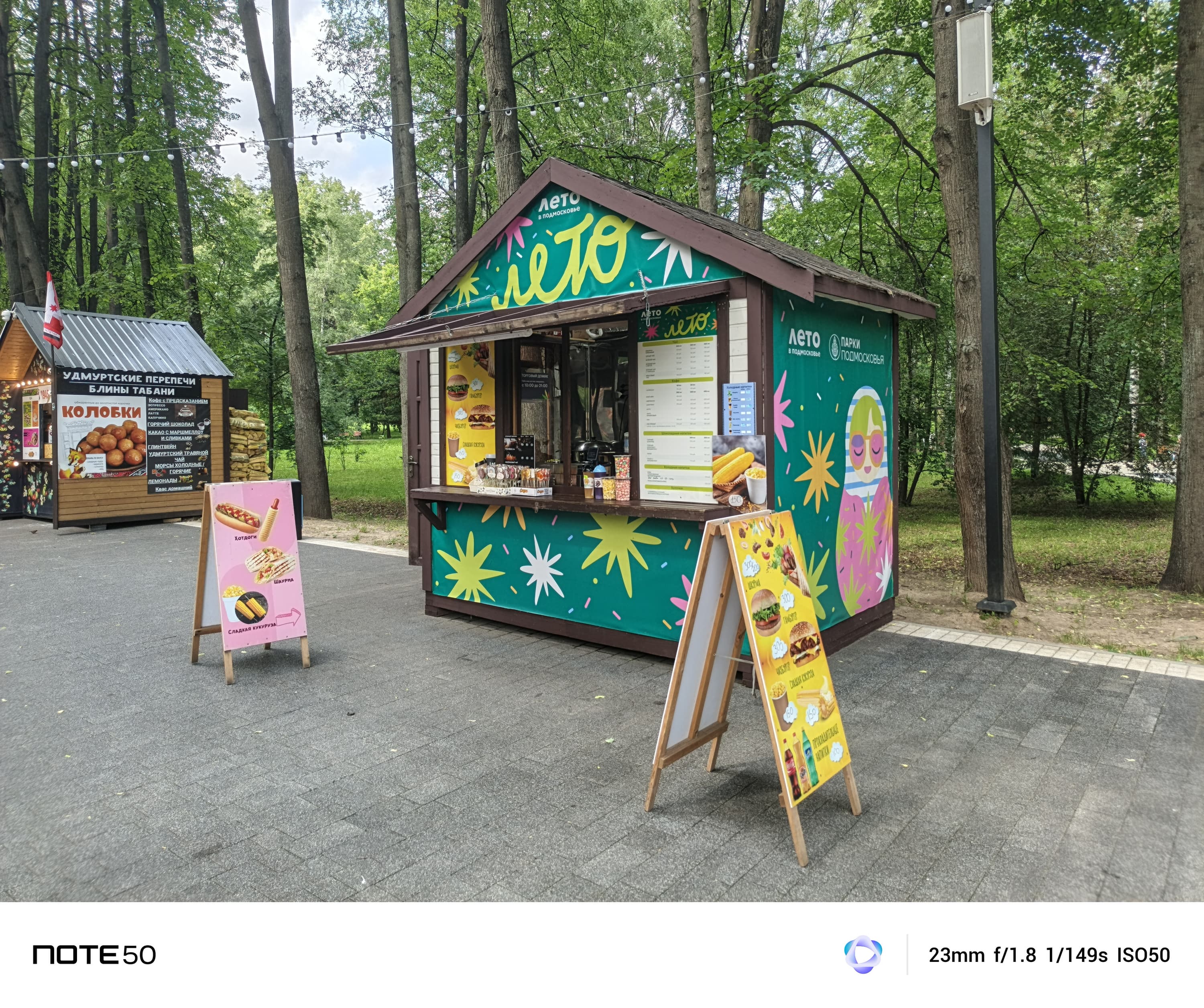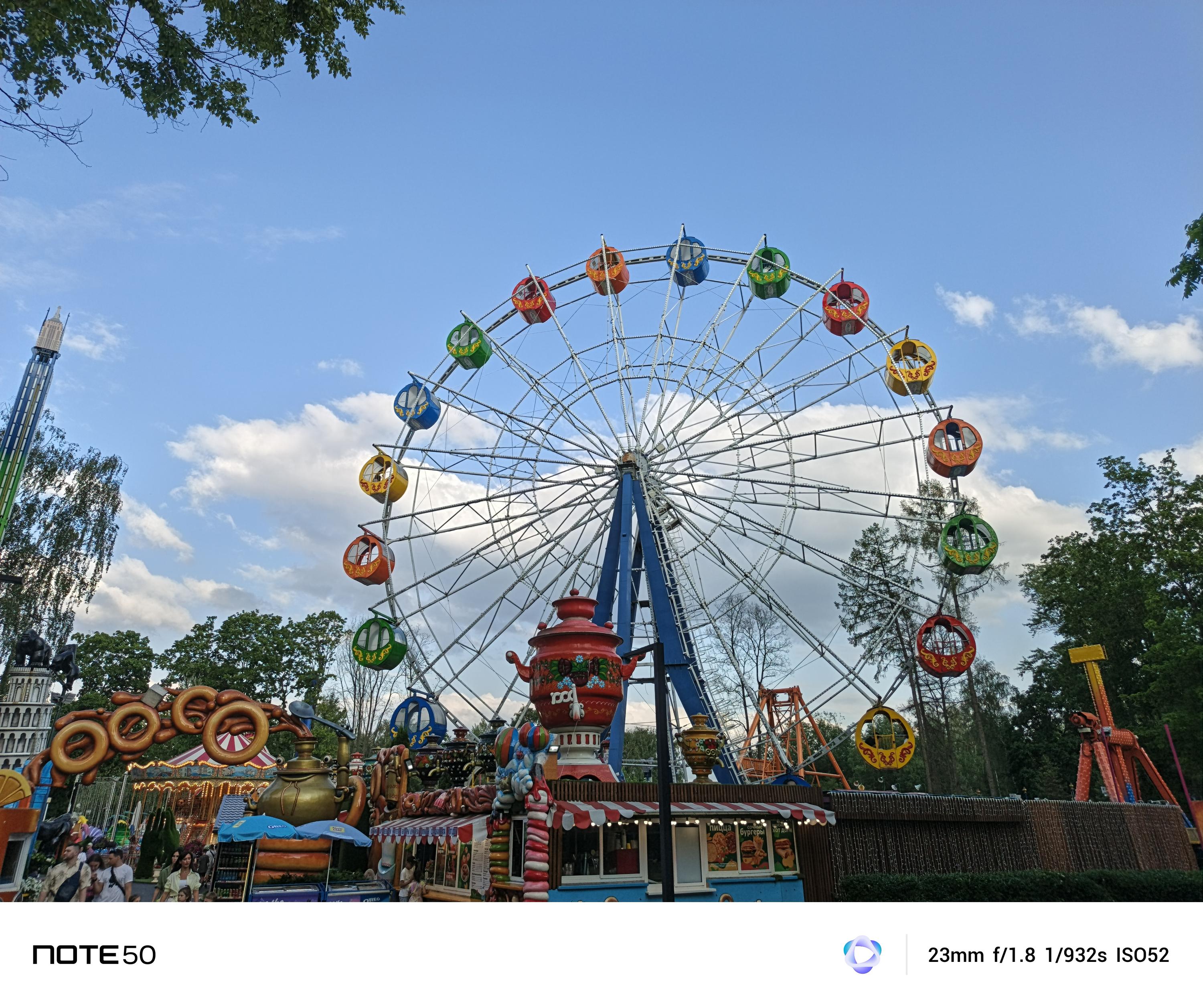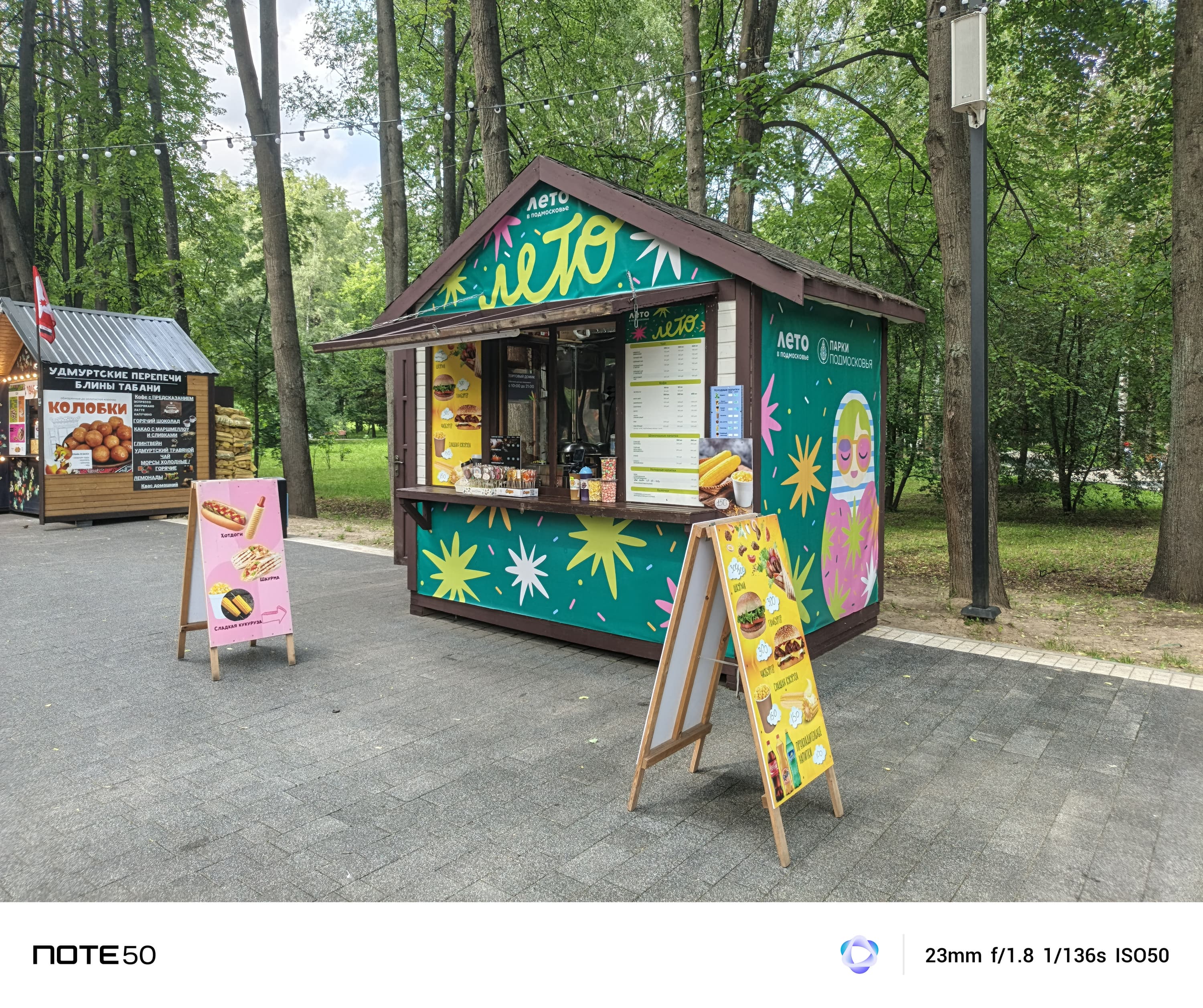 Несмотря на всю «солидность» блока камер на спинке смартфона, Infinix Note 50 оснащен лишь одной снимающей тыльной камерой (и вспомогательным 2-мегапиксельным сенсором). Камера имеет фазовый автофокус и оптический стабилизатор, ее характеристики таковы: 50 Мп, 1/1,57″, 1,0 мкм, f/1,9. Возможности отключить «рамку» вокруг фотографии мы в нашем экземпляре не обнаружили.