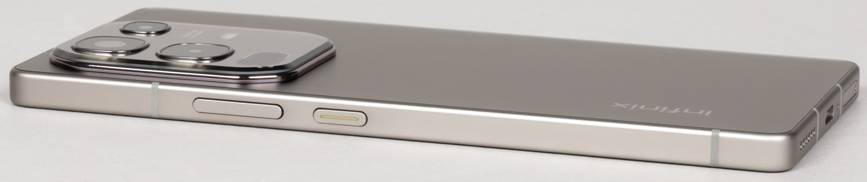 У Infinix Note 50 очень приятный дизайн и отличное сочетание габаритов и массы. Телефон с крупным экраном и объемной батареей не превышает по массе психологического порога в 200 граммов, а толщина его тонкого корпуса не достигает и 8 мм. Довольно узкий смартфон с удобным соотношением сторон комфортно удерживается в руке за счет широких плоских боковин, а солидный дорогой дизайн привлекает внимание окружающих.