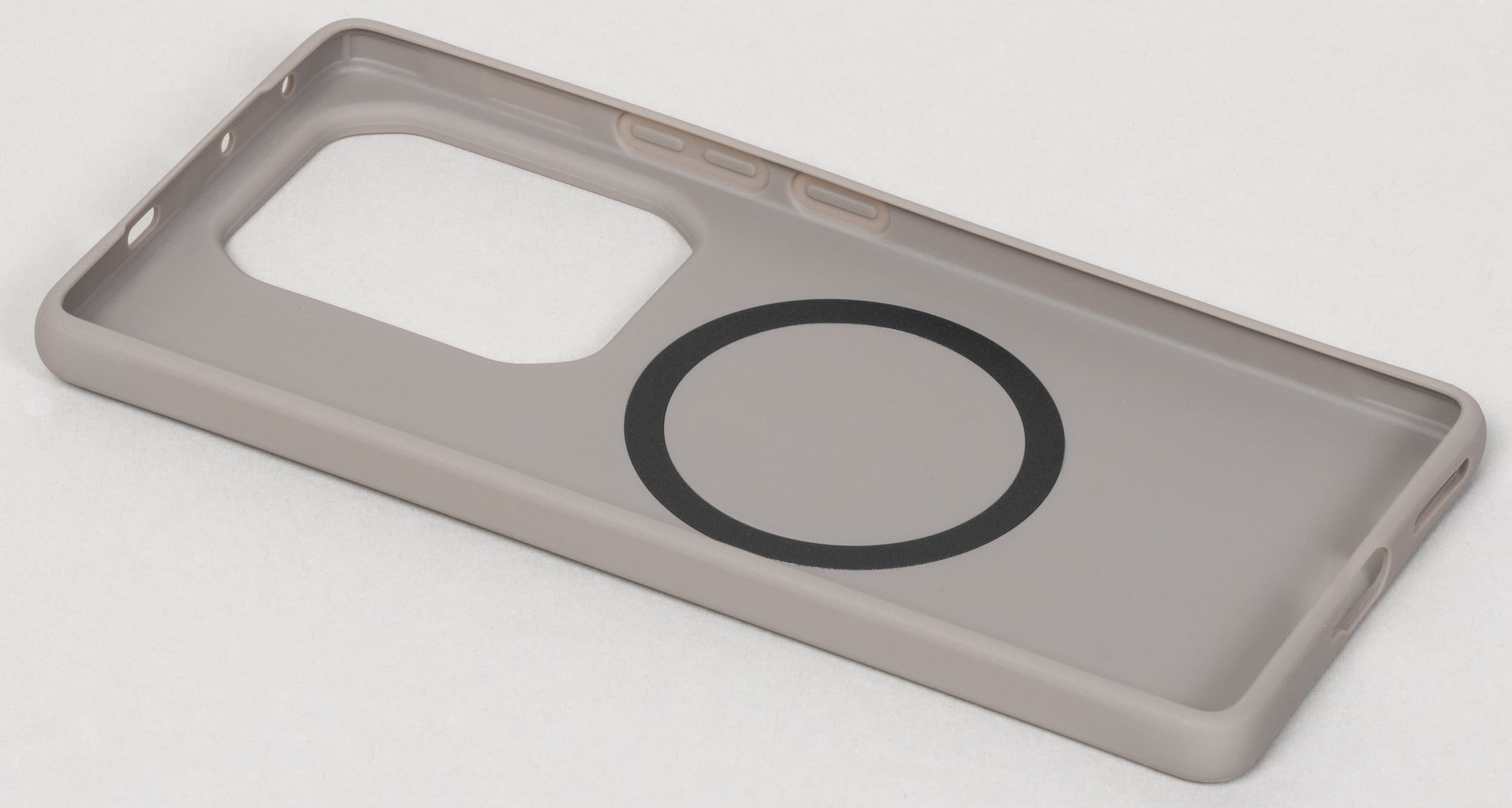 Чехол с поддержкой беспроводной зарядки не прозрачный, но гибкий, с текстурированным геометрическим рисунком на спинке.