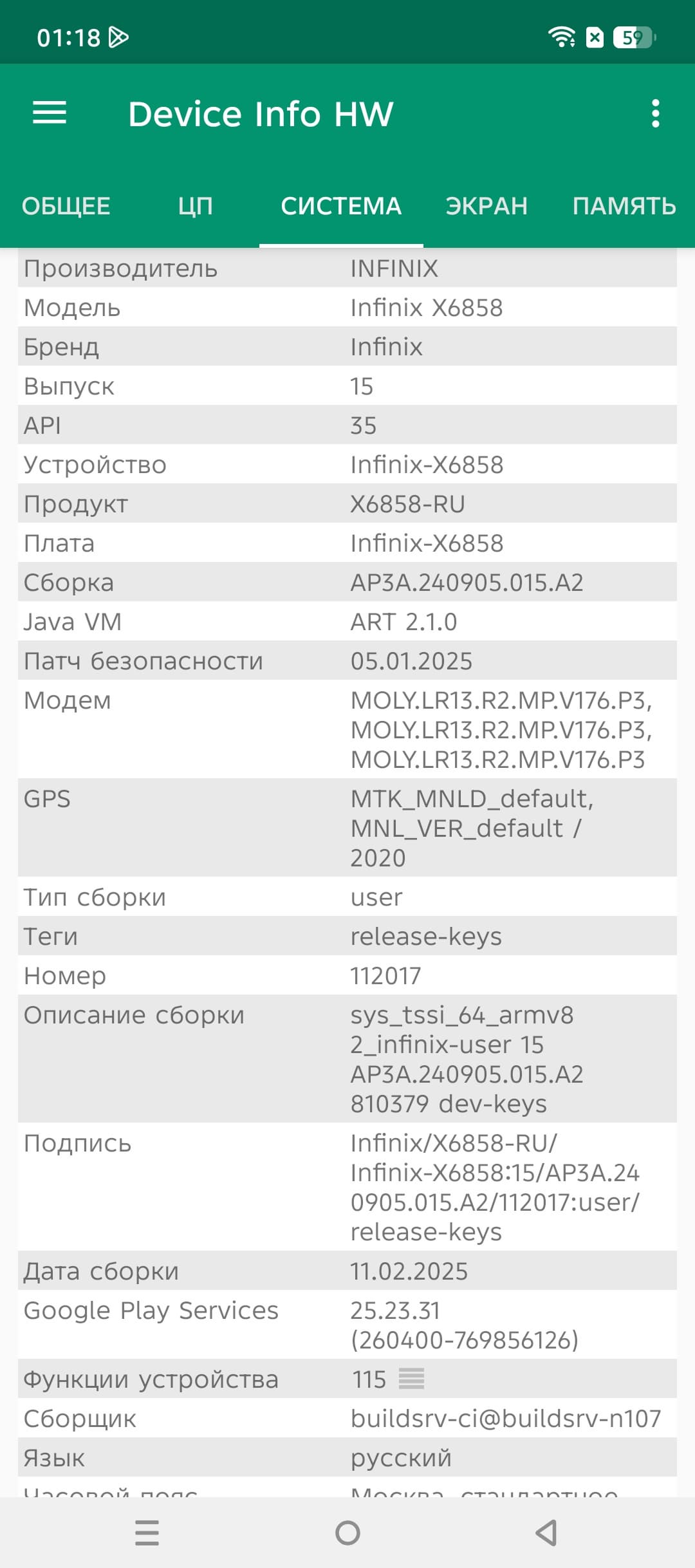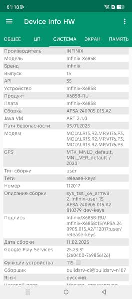 У смартфона Infinix Note 50 следующие сетевые возможности: поддерживаются мобильные сети вплоть до 4G, два диапазона Wi-Fi 6 и Bluetooth 5.4, есть поддержка NFC. Поддержки e-SIM нет. Среди встроенных датчиков нашлись все самые необходимые, вплоть до гироскопа.