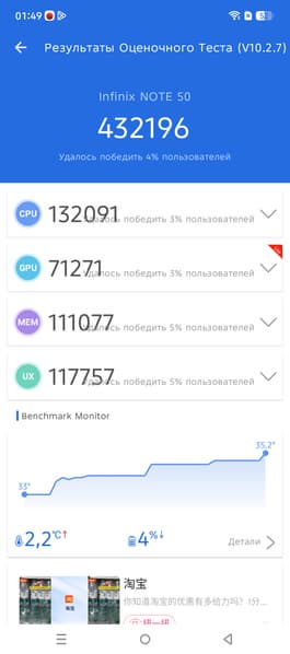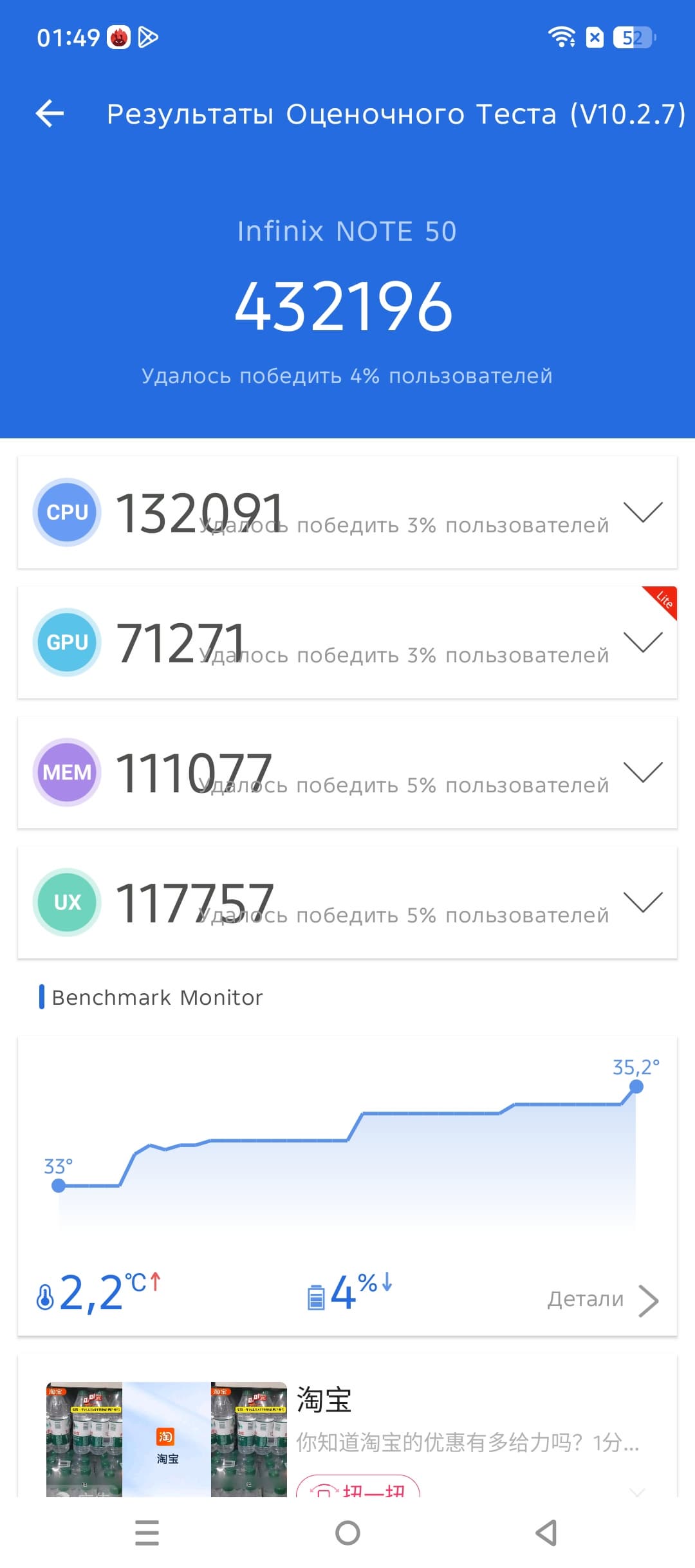 Infinix Note 50 получил батарею Li-Po с объемом 5200 мА·ч — чуть больше стандартного. В тестах смартфон продемонстрировал нормальный уровень автономности, не рекордный и не провальный.