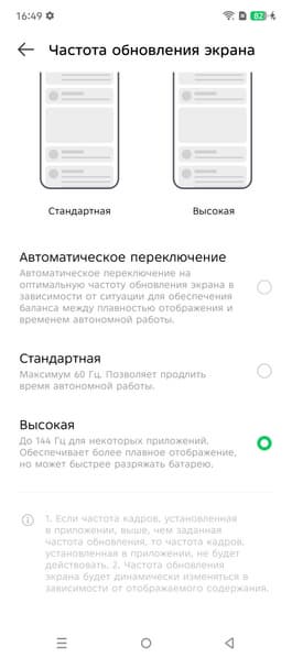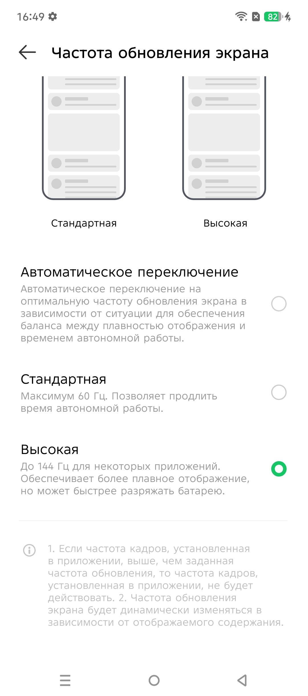 В настройках экрана можно включить режим с повышенной до 144 Гц частотой обновления: