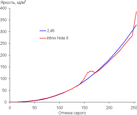 Видно, что цвета не сильно изменились у обоих экранов, но у Infinix Note 8 контраст уменьшился в большей степени из-за сильного высветления черного и большего снижения яркости.