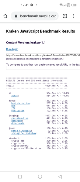 | Mozilla Kraken (мс, меньше — лучше) | 4091 | 3172 | 5586 | 2921 | 4478 |
