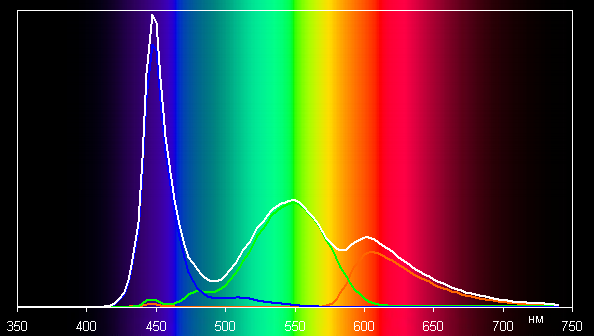 Спектры показывают, что светофильтры матрицы в умеренной степени подмешивают компоненты друг к другу: