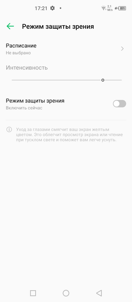 Также присутствует настройка, позволяющая снизить интенсивность синей компоненты.