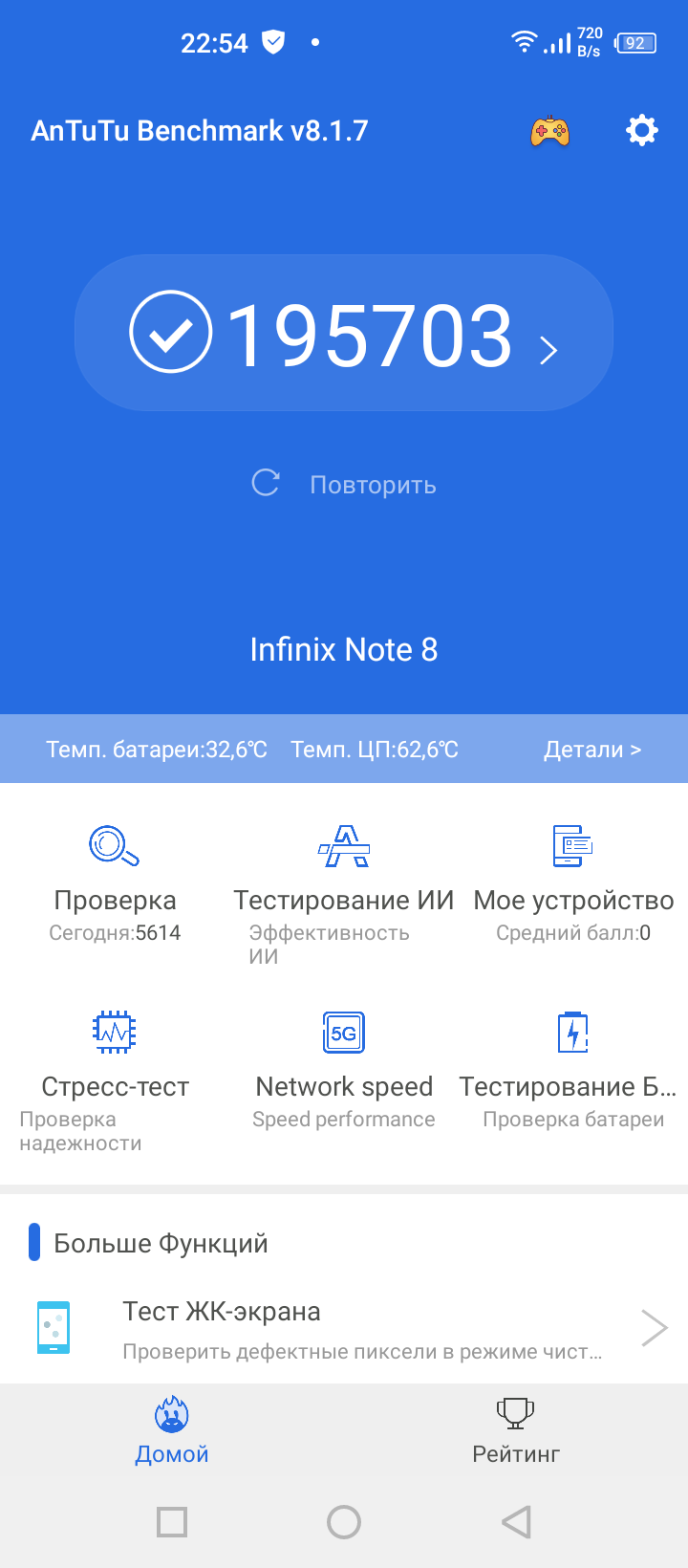 | AnTuTu (v8.x) (больше — лучше) | 195703 | 285369 | 219440 | 272020 | 174373 |