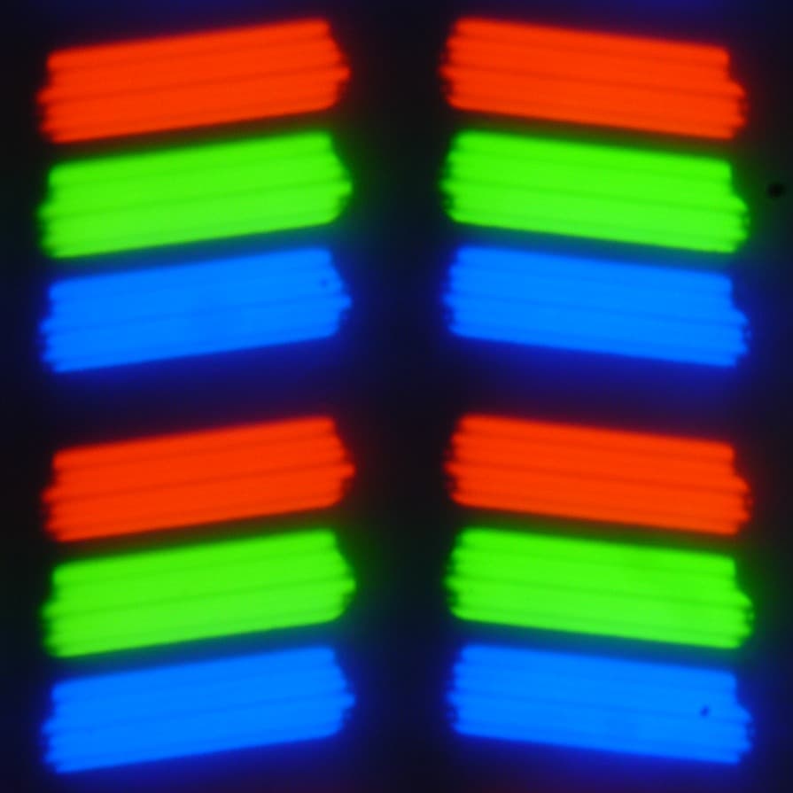 В данном смартфоне используется матрица типа IPS. Микрофотографии демонстрируют типичную для IPS структуру субпикселей: