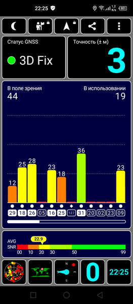 Навигационный модуль, к его чести, работает с GPS (с A-GPS), с отечественной Глонасс, с китайской Beidou и даже с европейской Galileo. Первые спутники даже при холодном старте обнаруживаются быстро, точность позиционирования не вызывает претензий.