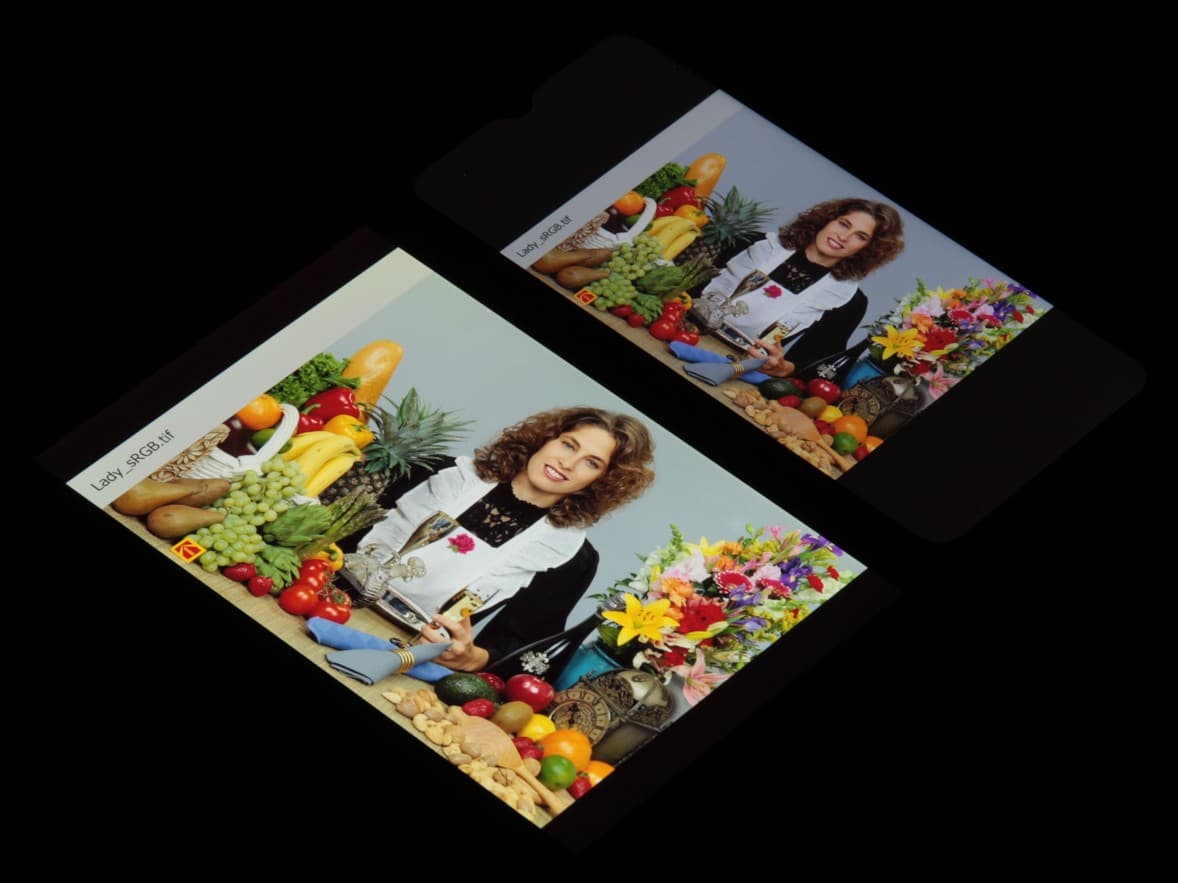 Видно, что цвета не сильно изменились у обоих экранов, но у Infinix Smart 7 контраст уменьшился в большей степени из-за высветления черного и большего снижения яркости.