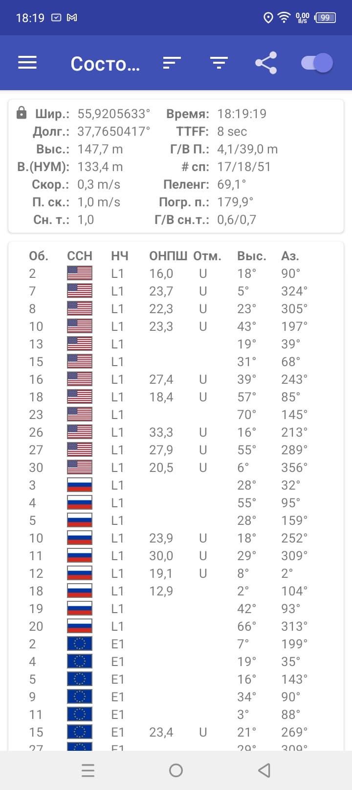 - GPS/A-GPS, Глонасс, Galileo, BDS