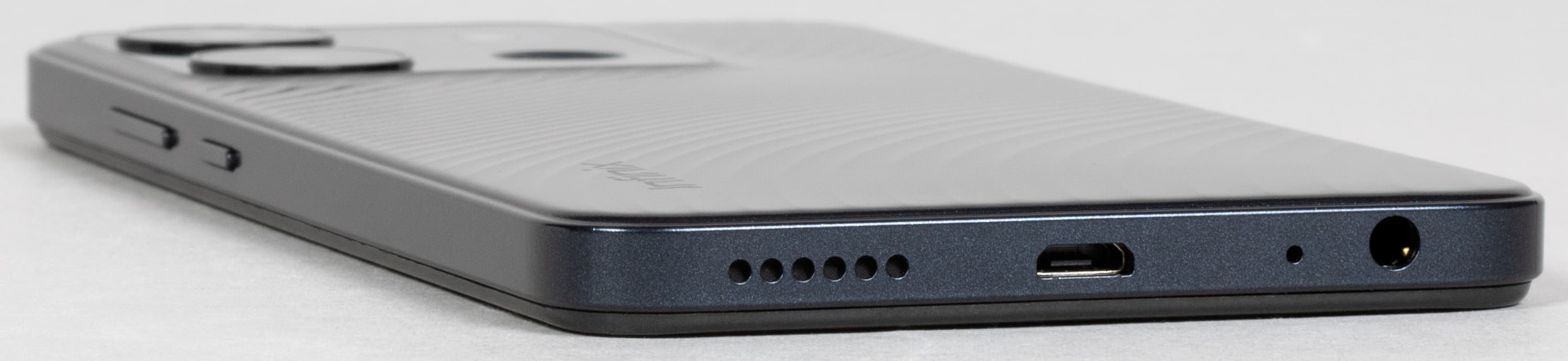 На верхнем торце ничего нет. На нижнем размещены динамик, микрофон, разъем Micro-USB и 3,5-миллиметровый аудиовыход для наушников. Про отсталый медленный и несимметричный разъем Micro-USB, который разработчики вроде бы уже более 10 лет назад договаривались искоренить, даже говорить больше не будем — оставим это на совести производителя. Все слова давно сказаны, а воз и ныне там.