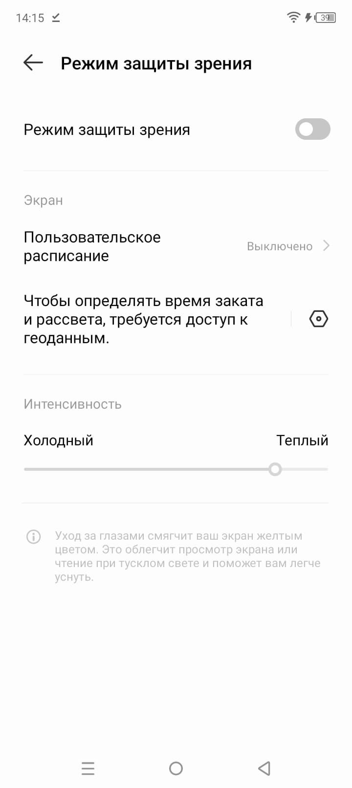 Присутствует настройка, позволяющая снизить интенсивность синей компоненты.