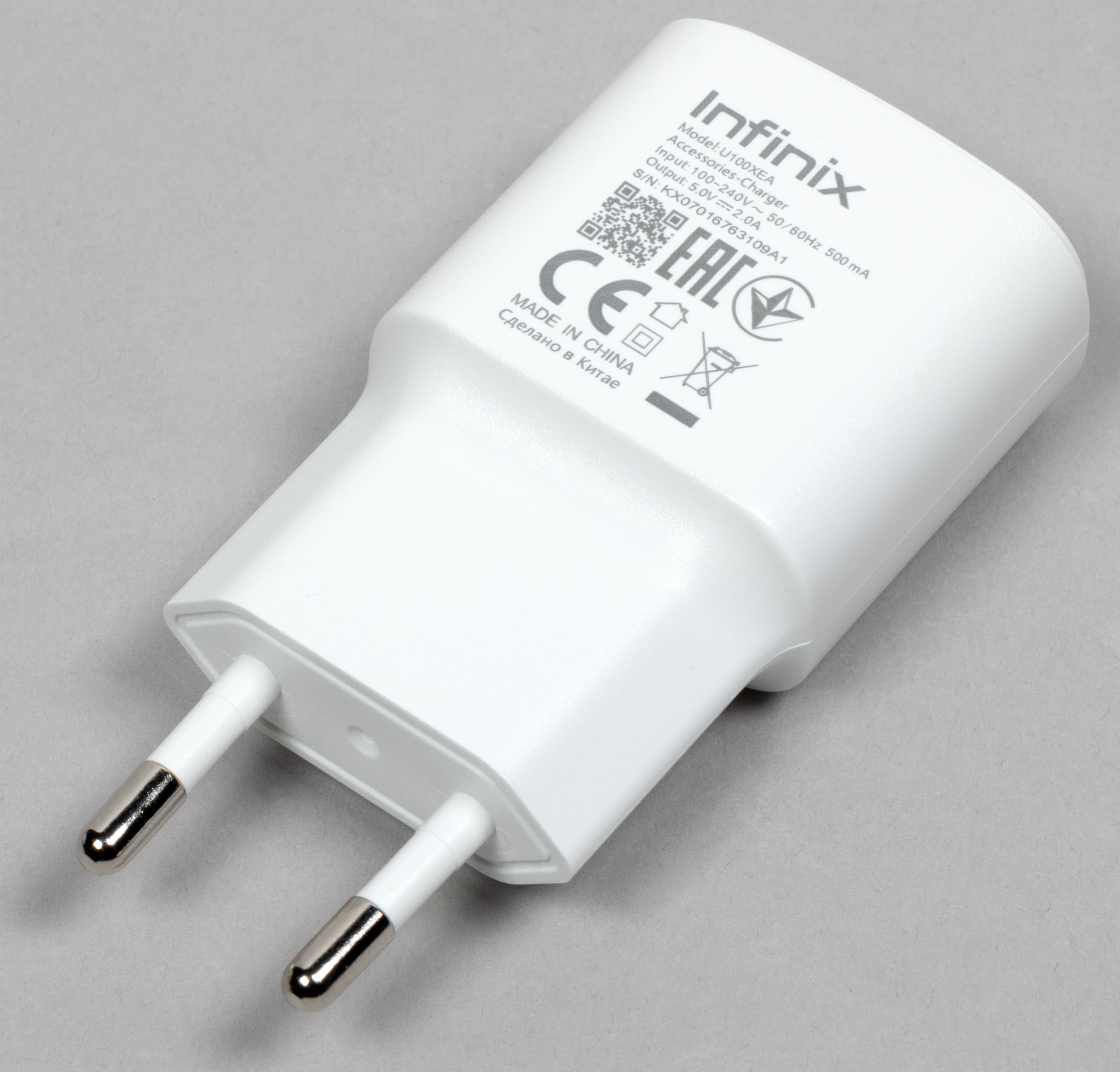В коробке, помимо самого смартфона, можно найти только соединительный кабель Micro-USB и сетевое зарядное устройство с максимальной выходной мощностью 10 Вт. Защитная пленка уже наклеена на экран заводским способом.