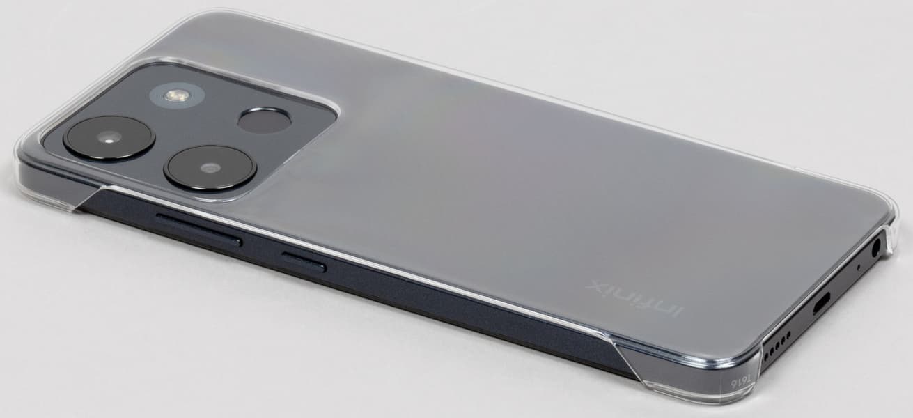Комплектный защитный чехол представляет собой твердую прозрачную накладку, прикрывающую спинку и верхний торец, а также угловые части. Боковины остаются открытыми. Чехол совсем простенький и примитивный, даже хуже, чем гибкий «силиконовый».