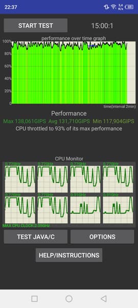Тестирование традиционно проводилось на обычном уровне энергопотребления без использования функций энергосбережения, хотя таковые в аппарате имеются. Условия тестирования: выставлен минимальный комфортный уровень яркости (примерно 100 кд/м²). Тесты: беспрерывное чтение в программе Moon+ Reader (со стандартной, светлой темой); беспрерывный просмотр видео в HD-качестве (720р) через домашнюю сеть Wi-Fi; игра Injustice 2 с автонастройками графики.