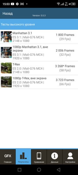 | GFXBenchmark T-Rex (1080p Offscreen, fps) | 66 | 134 | 92 | 87 | 61 |
