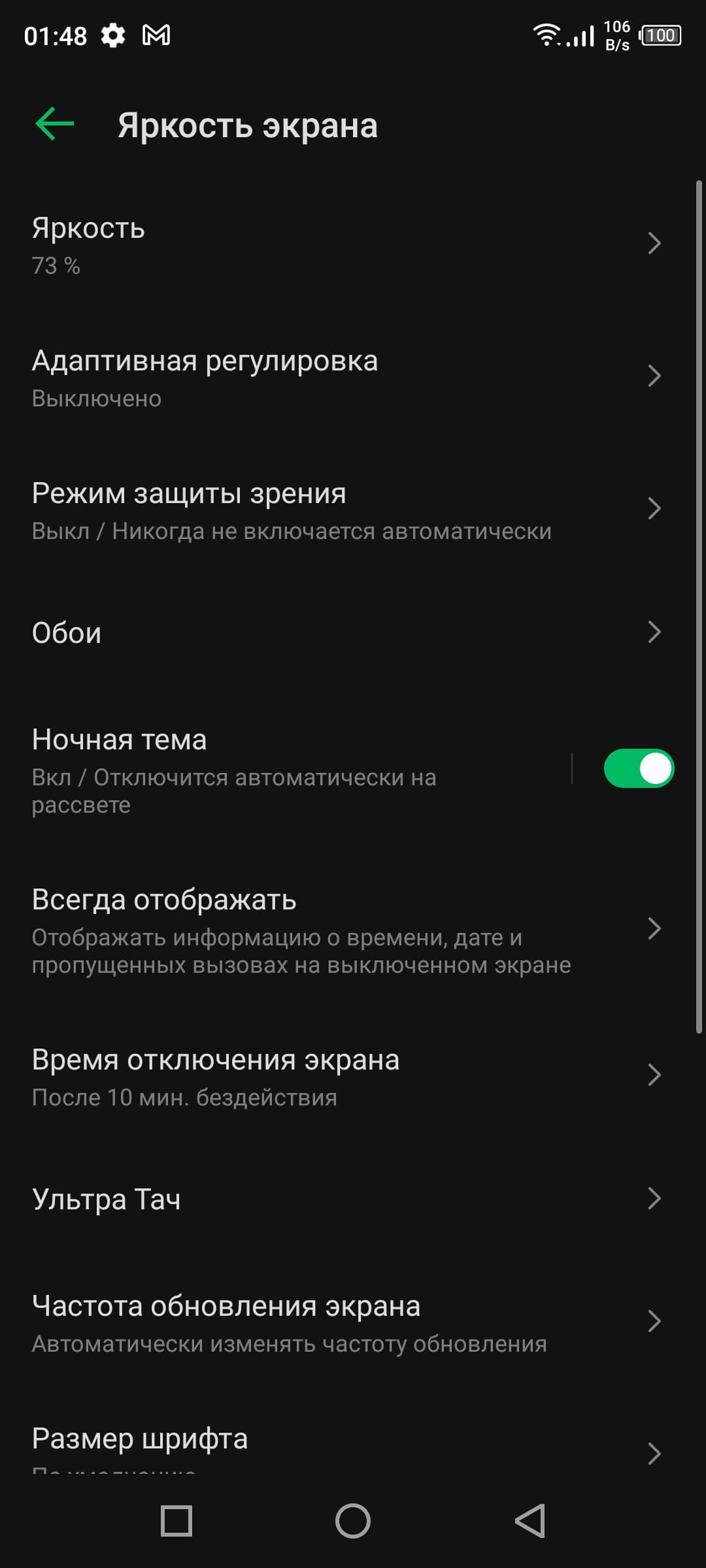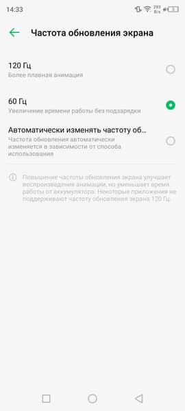 В настройках экрана можно включить режим с повышенной до 120 Гц частотой обновления: