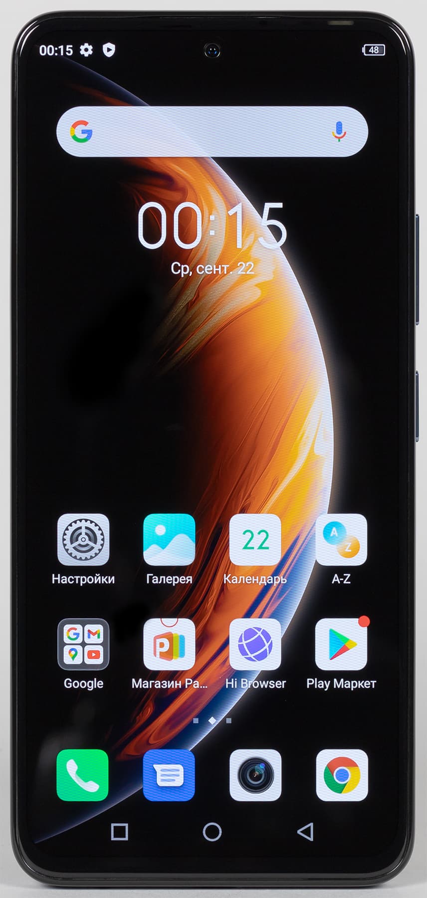 Фронтальная камера установлена за круглым вырезом в матрице дисплея. К сожалению, он расположен прямо по центру, а не убран в угол. Светодиодного индикатора событий нет.