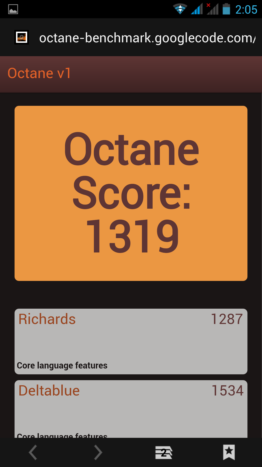 Смартфон выступил согласно нашим ожиданиям. В целом можно отметить, что использование Full HD матрицы в устройствах с MediaTek MT6589 не дает возможности играть в ресурсоемкие игры в полном разрешении, однако положительно сказывается на таких задачах как просмотр сайтов или работа с текстами.