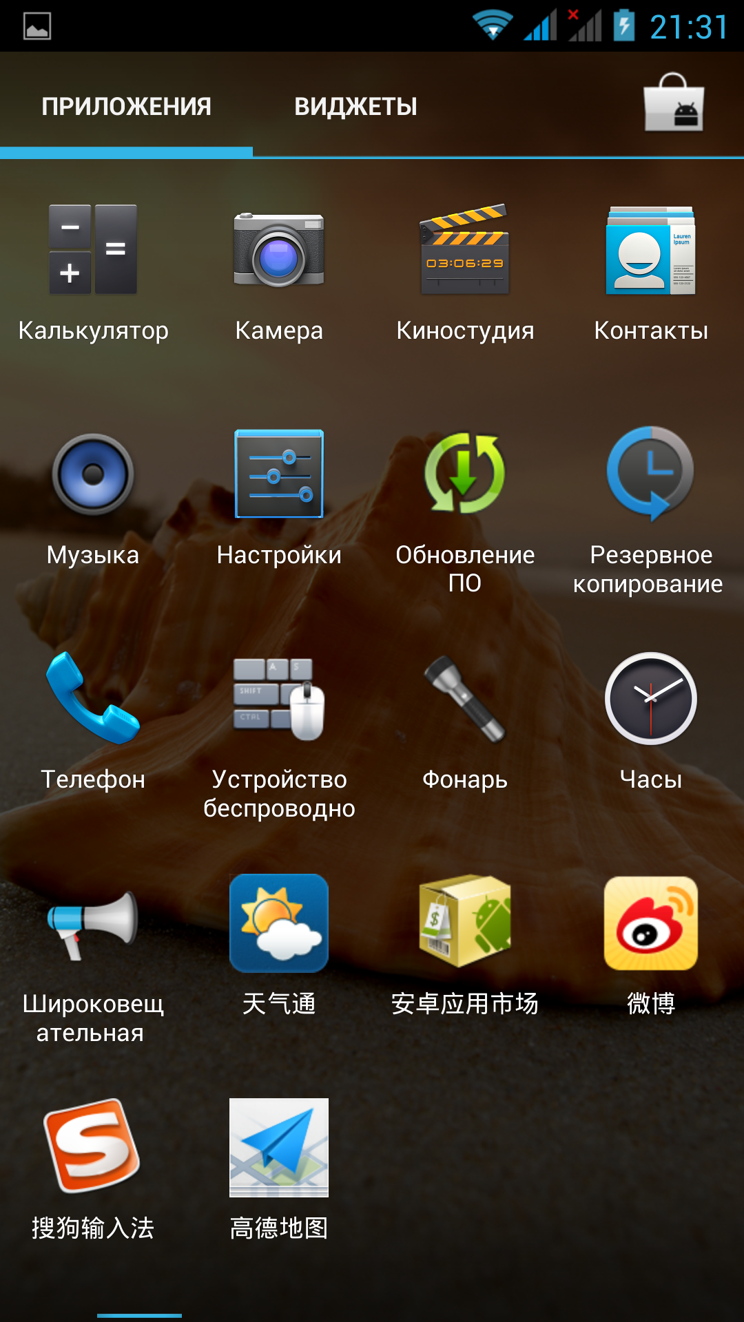 По умолчанию прошивка использует китайский язык и даже не задает вопроса о выборе после сброса, что очень неудобно. Зато если вы все-таки доберетесь до нужного пункта настроек, то встретите в нем не только английский, но даже и русский. Правда, некоторое число предустановленных приложений так и останутся на китайском, но без них можно легко обойтись, а многие даже просто удалить, освободив около 50 МБ в основной памяти.