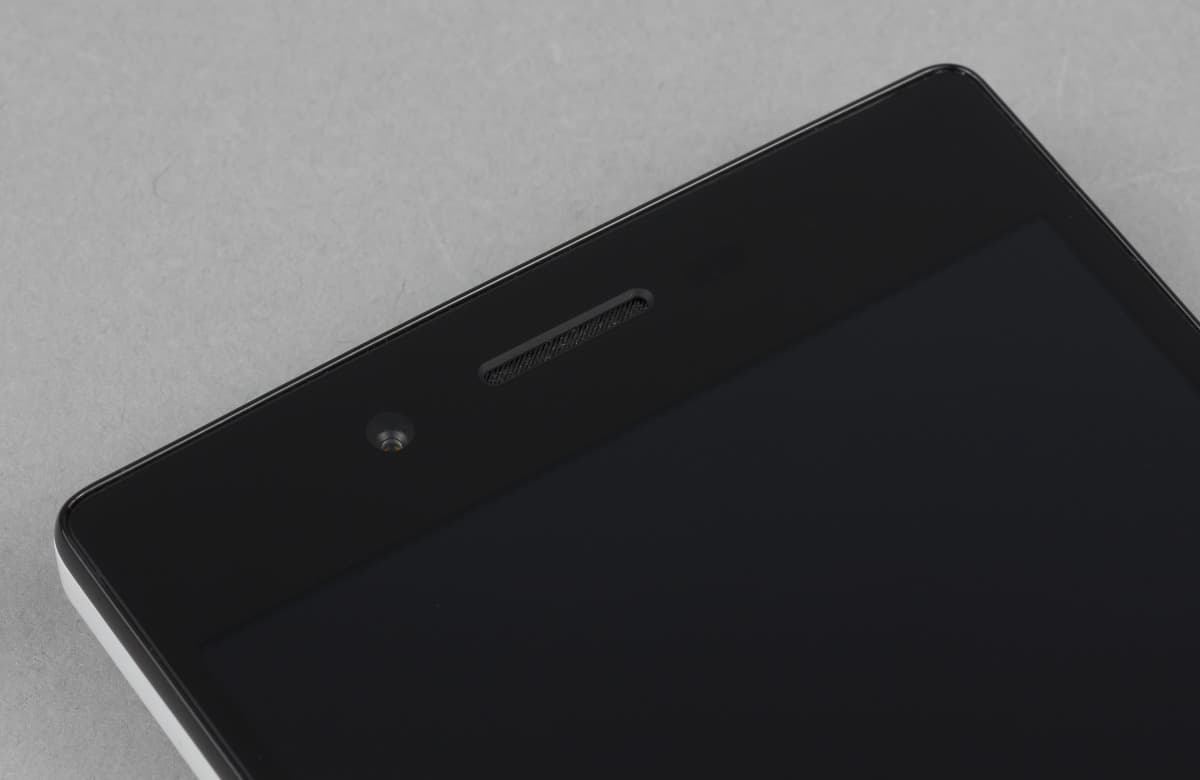 В верхней части лицевой панели разместили окошко фронтальной камеры, датчики приближения и освещенности, дополнительный светодиодный индикатор и щель разговорного динамика. Дизайн этой щели очень похож на используемый Apple в своих продуктах. Выглядит он, конечно, неплохо, но, как и у «фруктовой компании», мелкая решетка будет хорошо собирать пыль.