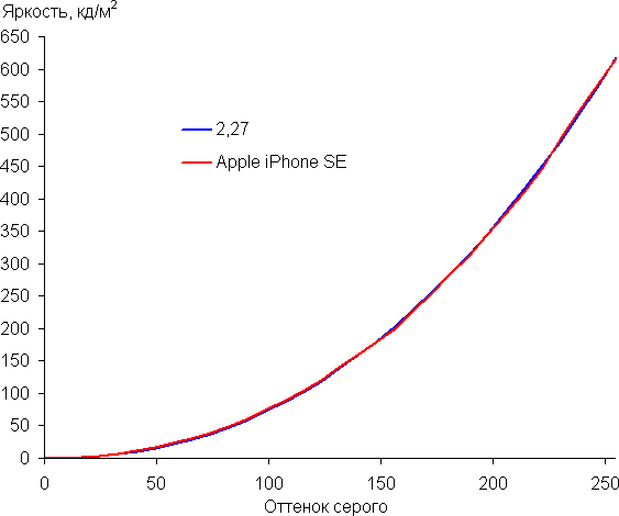 Видно, что в этом случае программного перекрестного подмешивания компонент практически нет, то есть родное для экрана Apple iPhone SE цветовое пространство равно Display P3.
