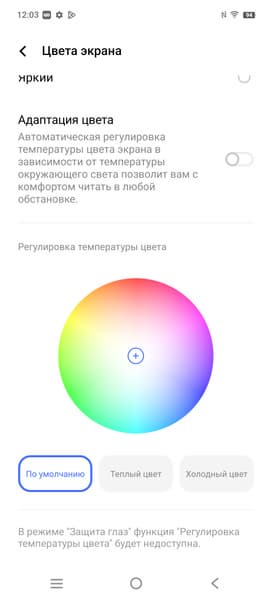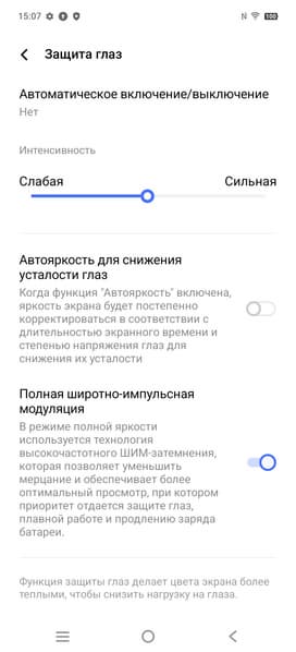 Разумеется, присутствует настройка (Защита глаз), позволяющая снизить интенсивность синей компоненты: