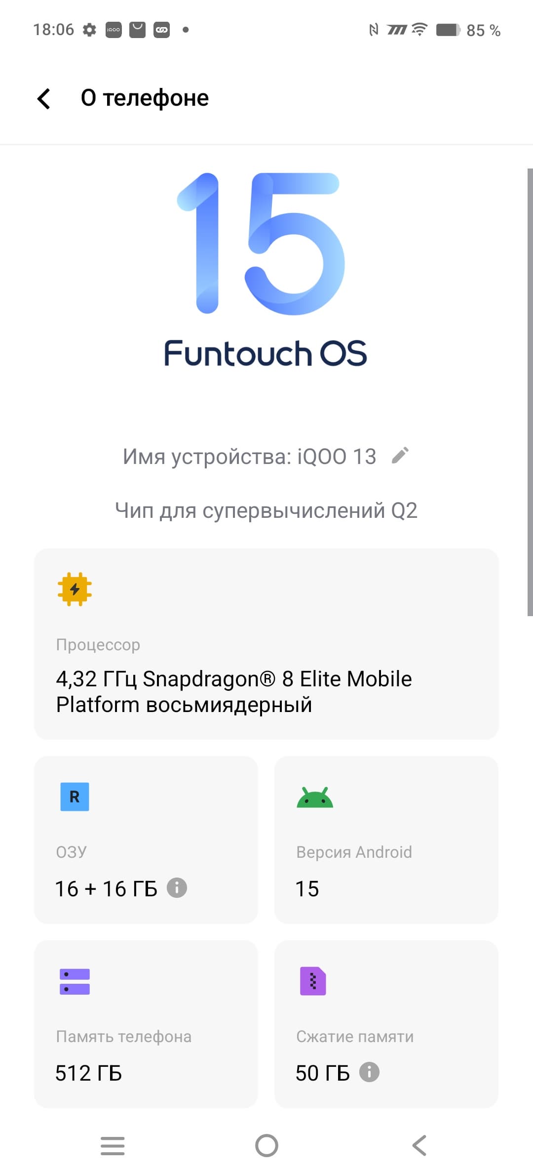 В качестве программной платформы в iQoo 13 используется фирменная оболочка Funtouch OS 15 на базе Android 15. Производитель обещает минимум 4 основных обновления Android для данной модели. Оболочка хорошо оптимизирована, интерфейс быстрый и плавный. Официальный магазин приложений Google Play и доступ к сервисам Google на месте. Рекламы нет. Дополнительных приложений предустановлено много, но они аккуратно спрятаны в две папки и их можно удалить. Присутствует режим дисплея Always-On. Оттягиваемая шторка не разделена на две части, она единая.