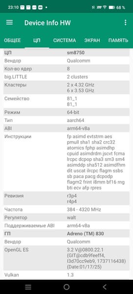 - SoC Qualcomm Snapdragon 8 Elite, 8 процессорных ядер (2×Oryon V2 Phoenix L @4,32 ГГц + 6×Oryon V2 Phoenix M @3,53 ГГц)