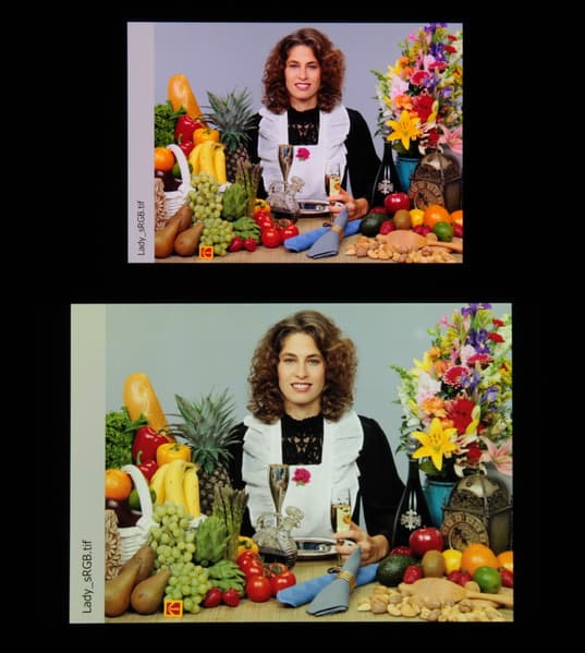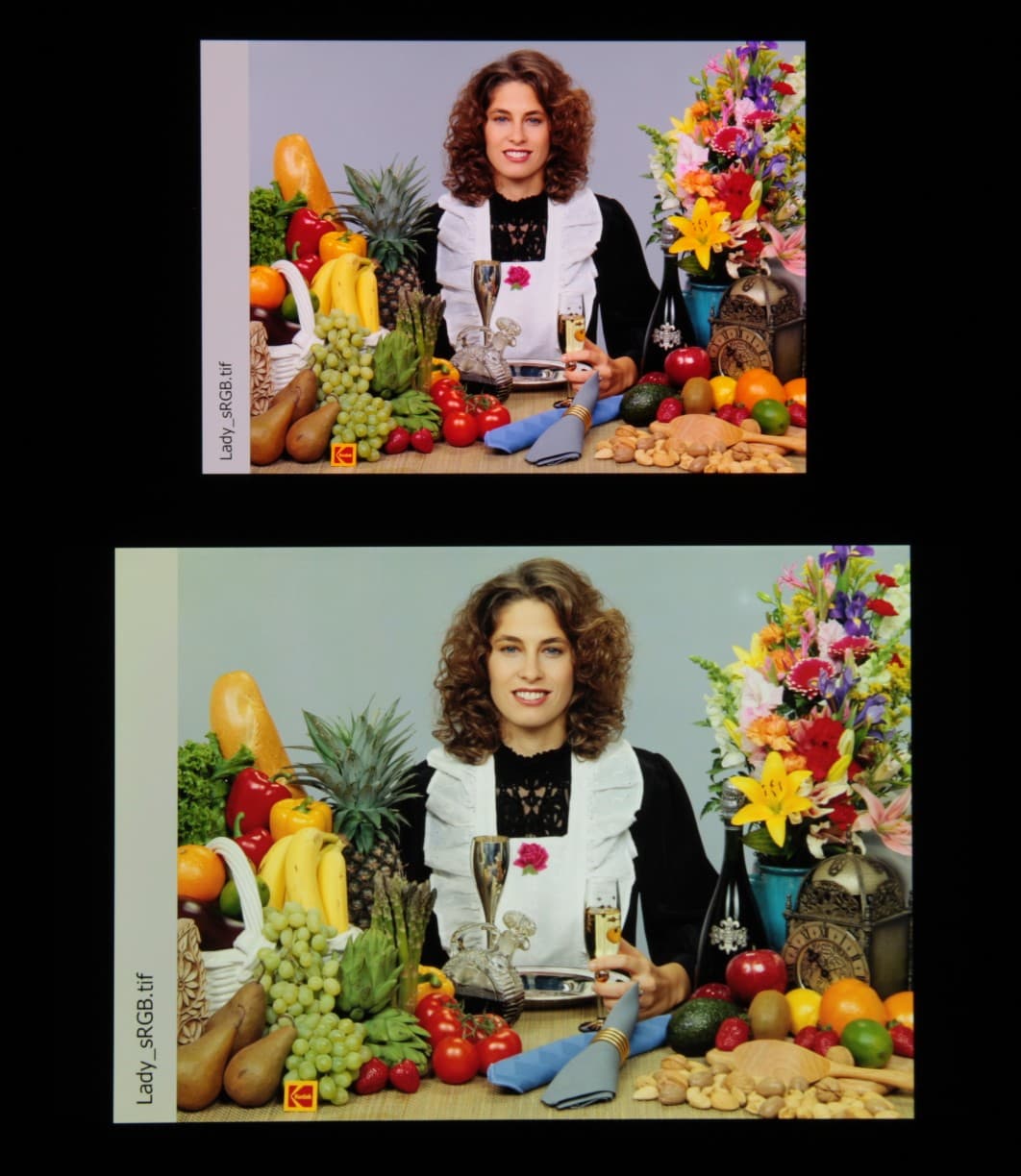Отметим, что на экранах с уширенным цветовым охватом (без соответствующей коррекции) цвета́ обычных изображений, оптимизированных для устройств sRGB, выглядят неестественно насыщенными. Отсюда и рекомендация: в большинстве случаев смотреть кино, фотографии и все естественное лучше при выборе профиля Профессиональный. При этом, если в изображении прописан отличный от sRGB профиль, то смотреть его лучше с использованием штатной программы Альбомы.