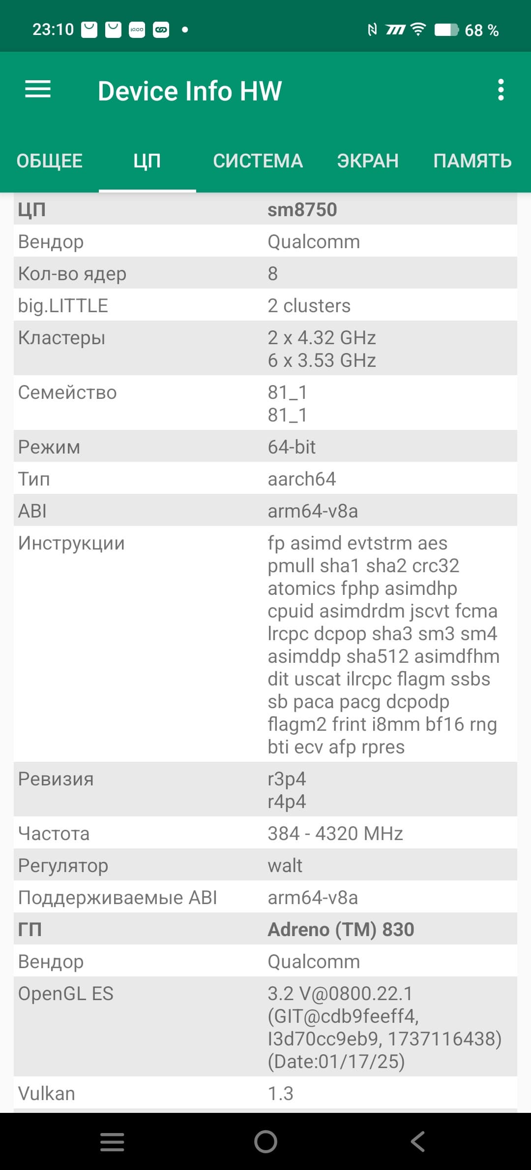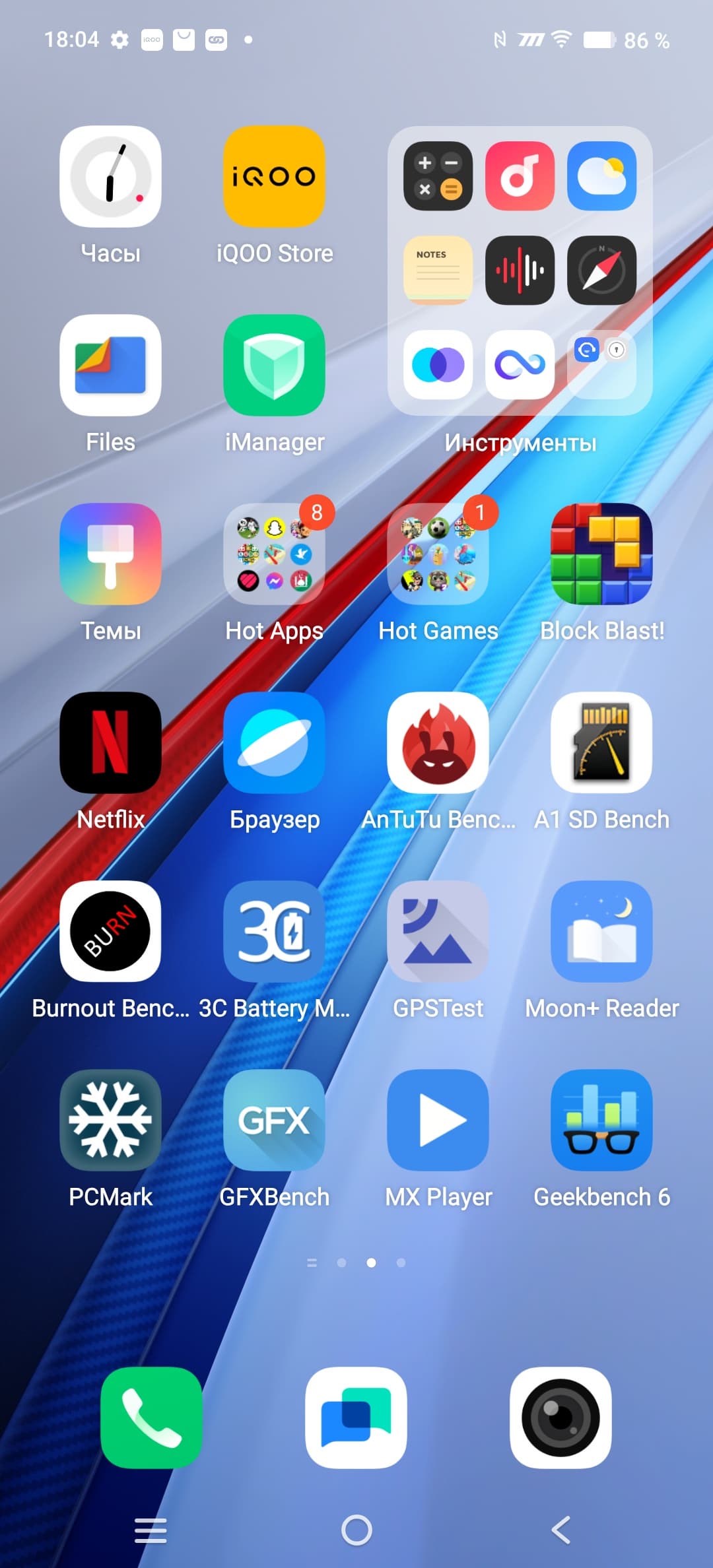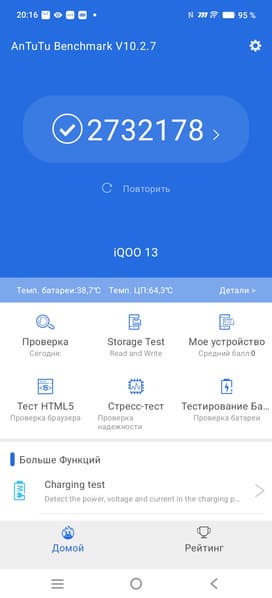 | AnTuTu (v10.x) (больше — лучше) | 2732178 | 1249560 | 2128115 | 1248642 | 1379644 |