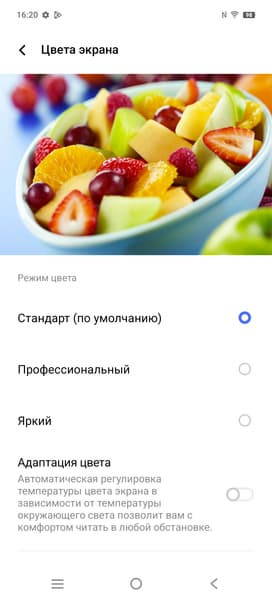 Фотография выше получена после выбора профиля Профессиональный в настройках экрана, всего их три.