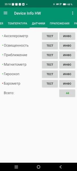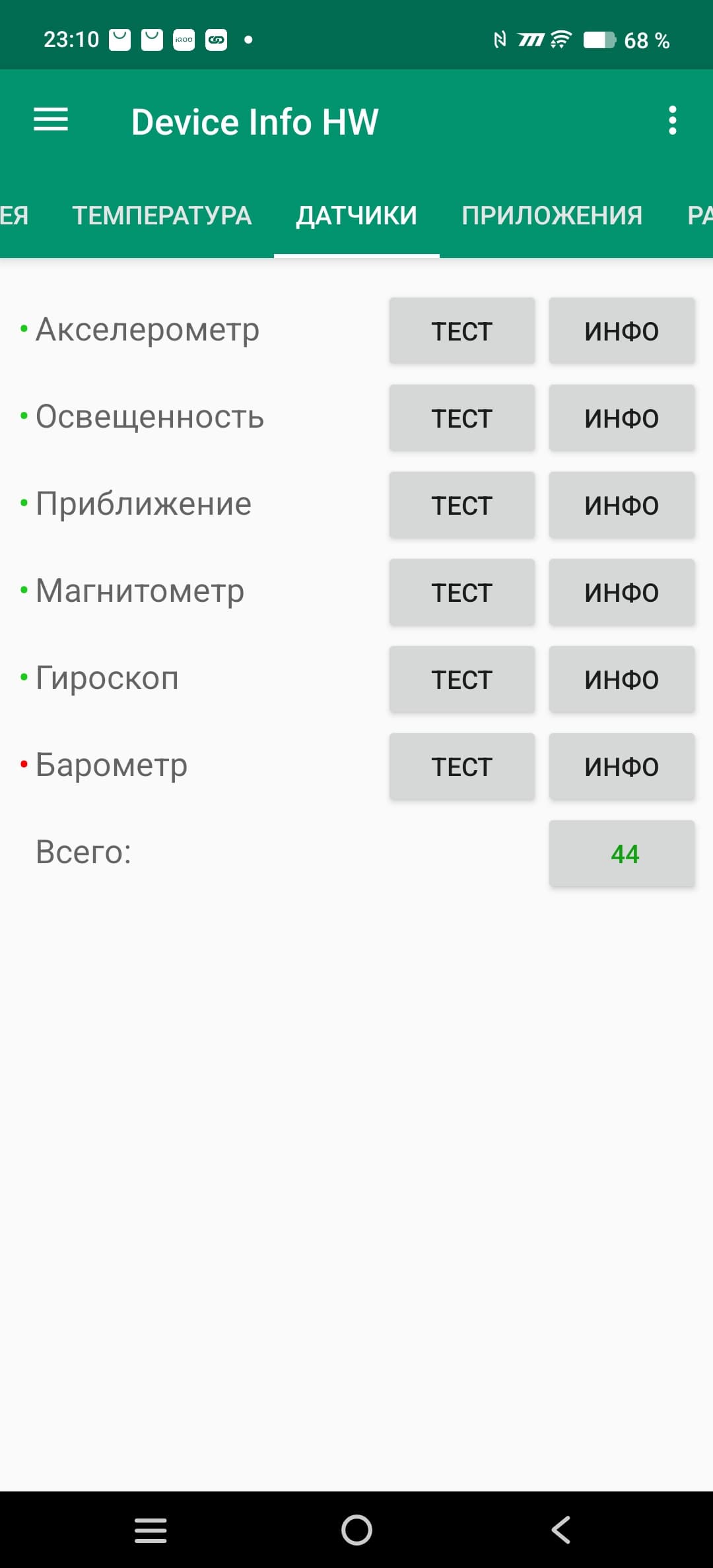 - Датчики приближения и освещения, магнитного поля, акселерометр, гироскоп