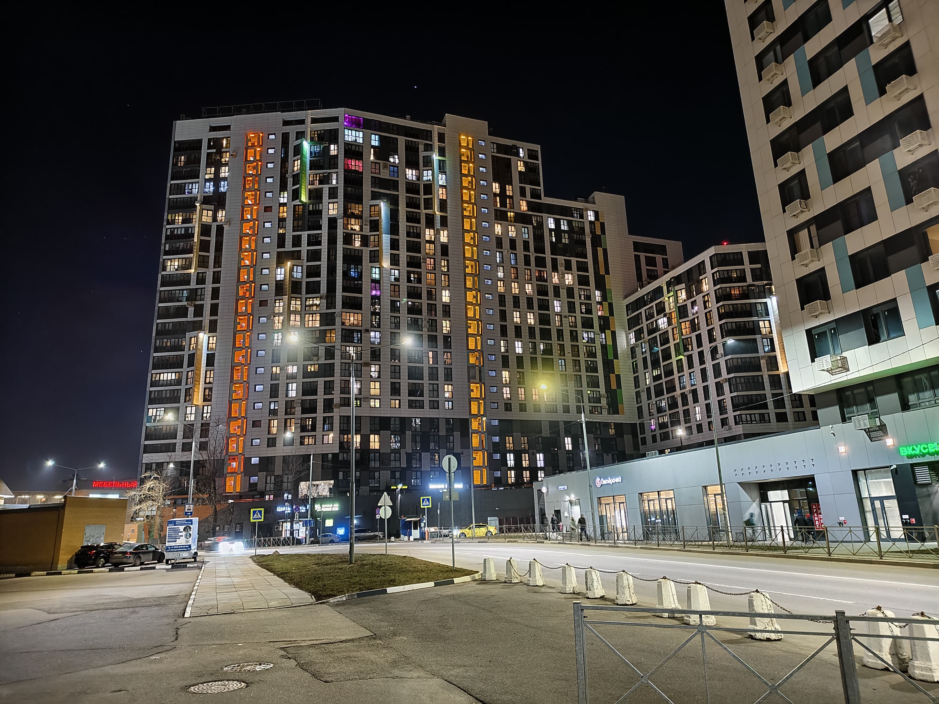 Ночью детализация ощутимо падает, размытие усиливается, но экспозиция не задирается, фотографии смотрятся яркими и ночными. Для миниатюр такие снимки точно подойдут. Ну а для фанатов съемки Луны смартфон в специальном режиме любезно наложит ее фотографию из базы на невнятную светящуюся точку в небе.