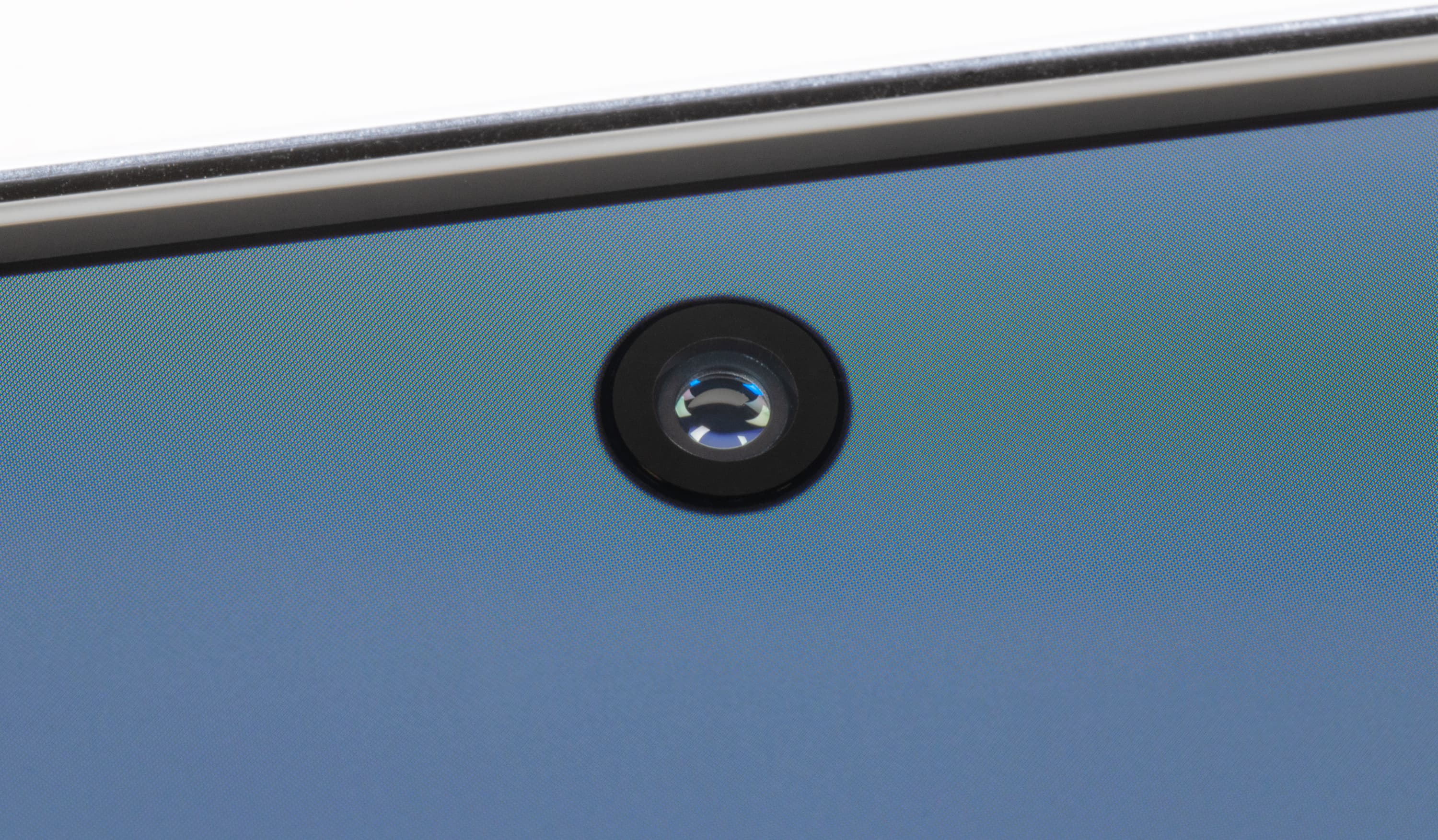 В верхней части матрицы экрана имеется отверстие круглой формы, за которым размещен объектив одиночной селфи-камеры.