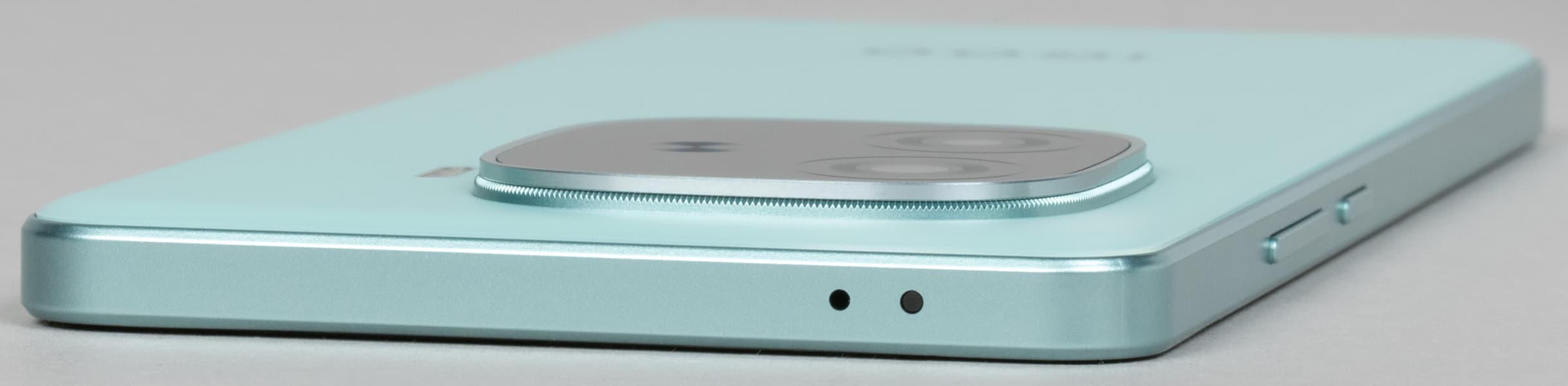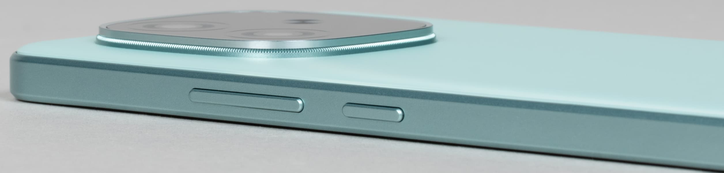 У iQoo Z9 простой и современный дизайн с актуальными формами. Просто, лаконично и практично. Боковины абсолютно плоские и не зауженные, за широкие бока смартфон надежно удерживается в руке. Спинка также в целом плоская, но к бокам она образует небольшие скосы, так что грани не врезаются в ладонь.