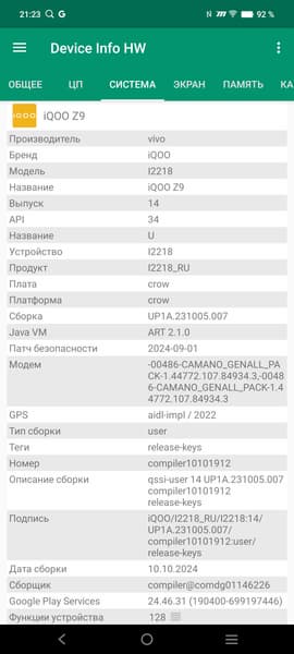 У смартфона iQoo Z9 достойные сетевые возможности: поддерживаются сети вплоть до 5G, два диапазона Wi-Fi 6 и Bluetooth 5.4, есть поддержка NFC. На практике в пределах городской черты московского региона аппарат демонстрирует уверенную работу в беспроводных сетях, не теряет связь, быстро восстанавливает связь после вынужденного обрыва. Все необходимые встроенные датчики, вплоть до гироскопа, на месте.