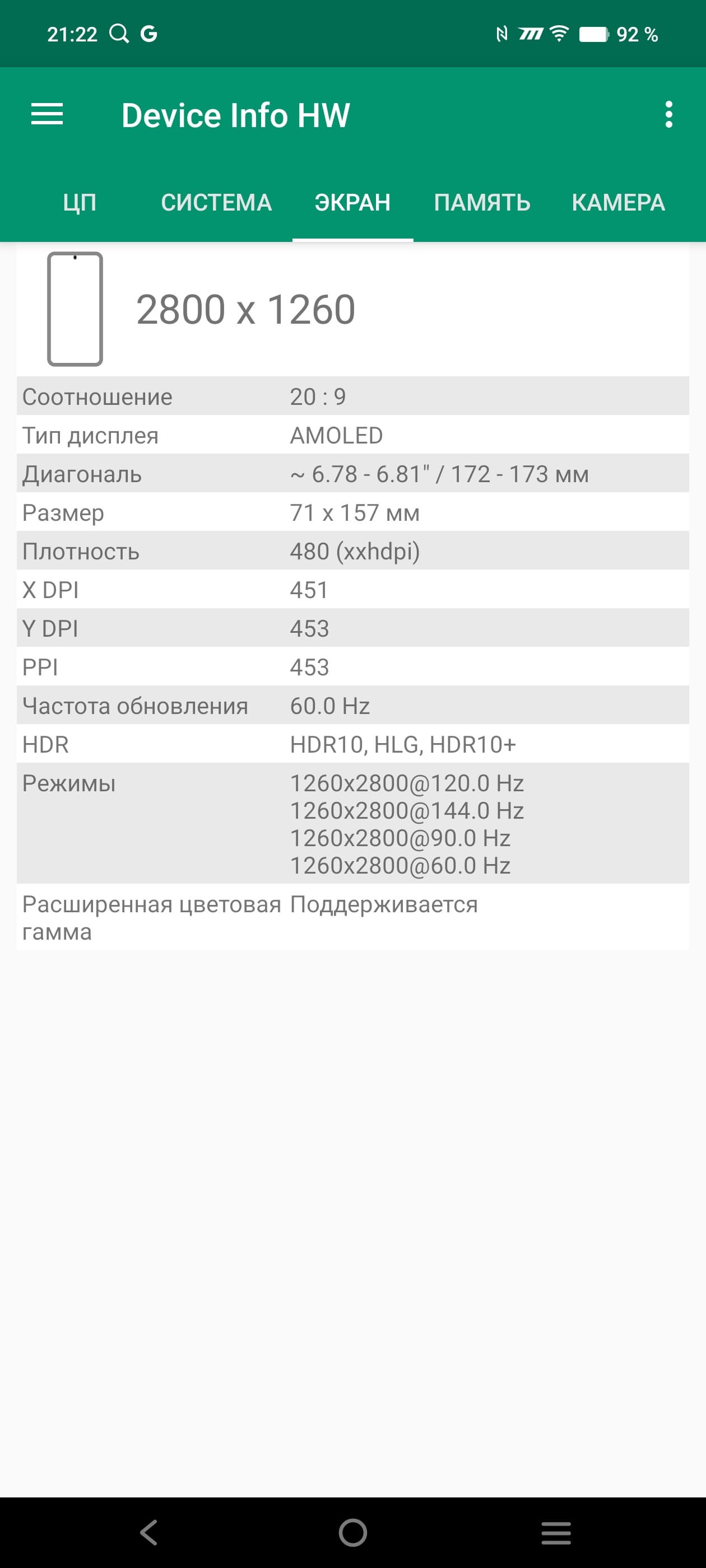 - Сенсорный дисплей AMOLED, 6,78″, 1260×2800, 453 ppi, 144 Гц