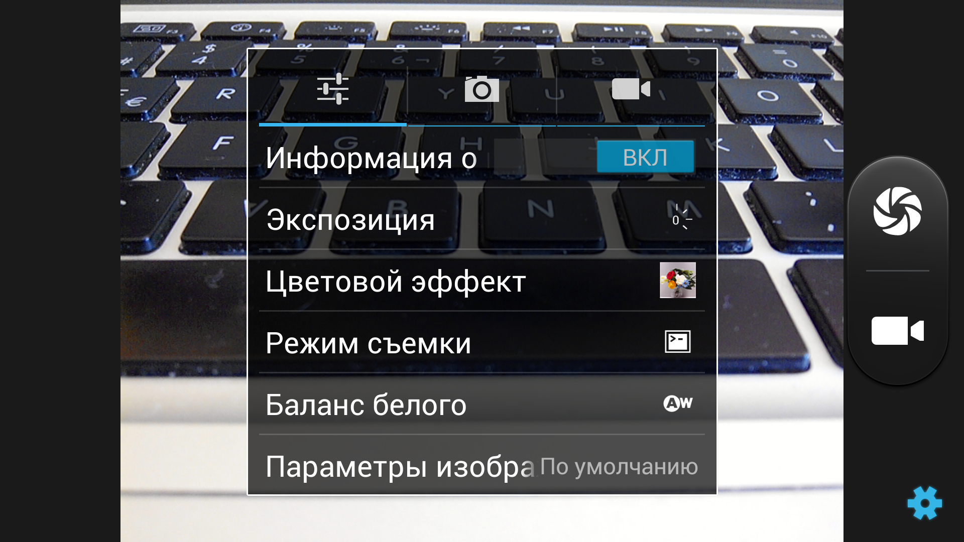 Программа управления камерой встроена в операционную систему, у нее стандартный внешний вид. Доступно несколько режимов съемки,в том числе HDR, панорама, псевдо-3D, распознавание лиц, автоматическое распознавание улыбок, сценическая съемка. В наличии возможность съемки серии из 99 снимков, автоспуск и непонятная настройка «Красота лица». Программа и камера стартуют быстро, но для полного удобства недостает отдельной клавиши для управления съемкой или хотя бы возможности запуска этого процесса с экрана блокировки смартфона.
