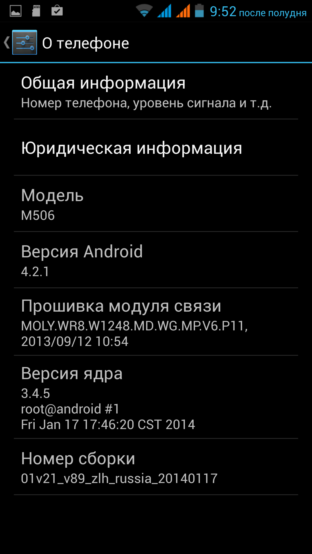 Смартфон iRu M506 работает под управлением операционной системы Android 4.2. На момент подготовки этого обзора обновлений прошивки на сайте iRu для него не было. В смартфоне отсутствует функция обновления через сеть, зато предоставляются root-права (возможно, они были доступны только в экземпляре, поступившем в редакцию).