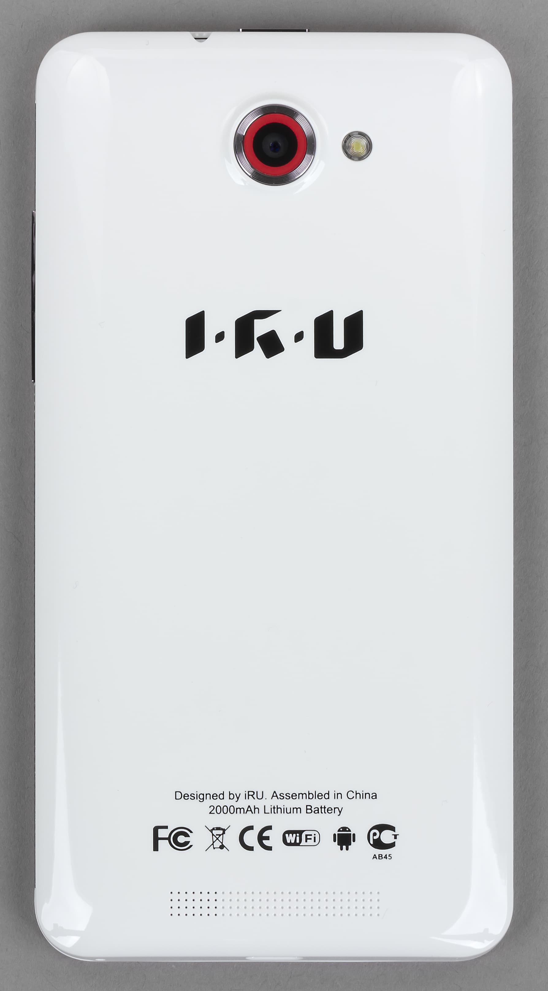 Итак, iRu M506 — классический современный моноблочный смартфон, не лишенный обаяния и нескольких дизайнерских «фишек». Мобильный компьютер изготовлен из прочного белого пластика. На трех торцах корпуса iRu M506 можно видеть пластиковые панельки, стилизованные под металл, в них даже есть перфорация. Из такого же материала изготовлены немногочисленные физические клавиши смарфона. Экстерьер iRu M506 может нравиться, а может нет, но вряд ли он оставит равнодушным — редкое качество для современных бюджетных смартфонов, большинство которых либо представляют собой внешне копии более дорогих собратьев, либо изготовлены словно «под копирку».