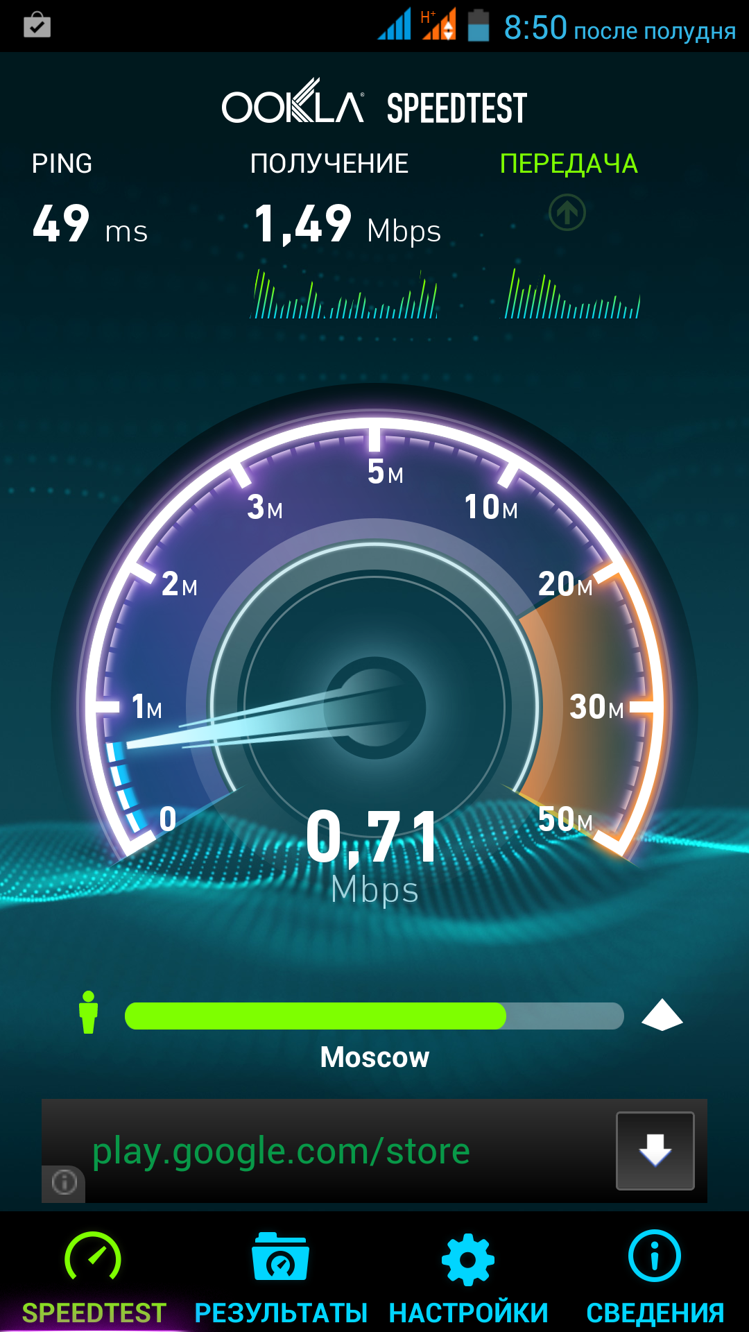 Подключение к домашней сети Wi-Fi IEEE 802.11n прошло без эксцессов. В связке с роутером TP-Link TL-WR1043ND герой обзора продемонстрировал скорость в 50 Мбит/с. Качество приема сигнала сети Wi-Fi у iRu M506 оказалось лучше, чем у iRu M5306 Gzhel.