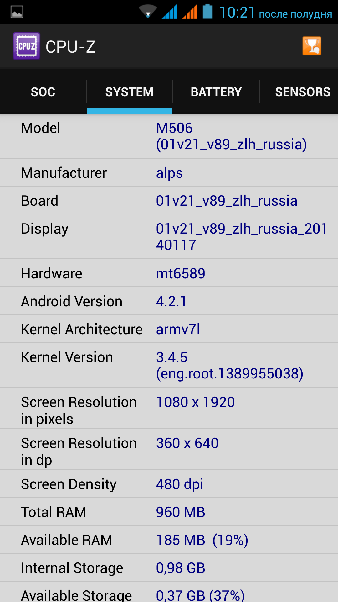 | iRu M506 (MediaTek MT6589) | Fly IQ451 (MediaTek MT6589) | Highscreen Alpha GTX (MediaTek MT6589) | Lenovo P780 (MediaTek MT6589) | Iconbit Mercury Quad FHD (MediaTek MT6589T) | |