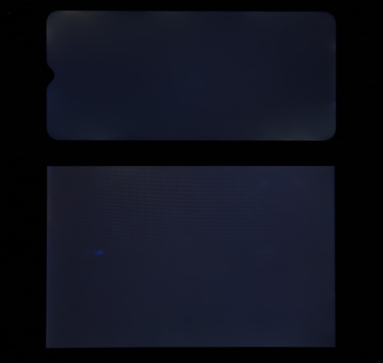 Экран смартфона имеет хорошие углы обзора без значительного сдвига цветов даже при больших отклонениях взгляда от перпендикуляра к экрану и без инвертирования оттенков. Однако черное поле при отклонении по диагонали сильно высветляется и приобретает красно-фиолетовый оттенок.