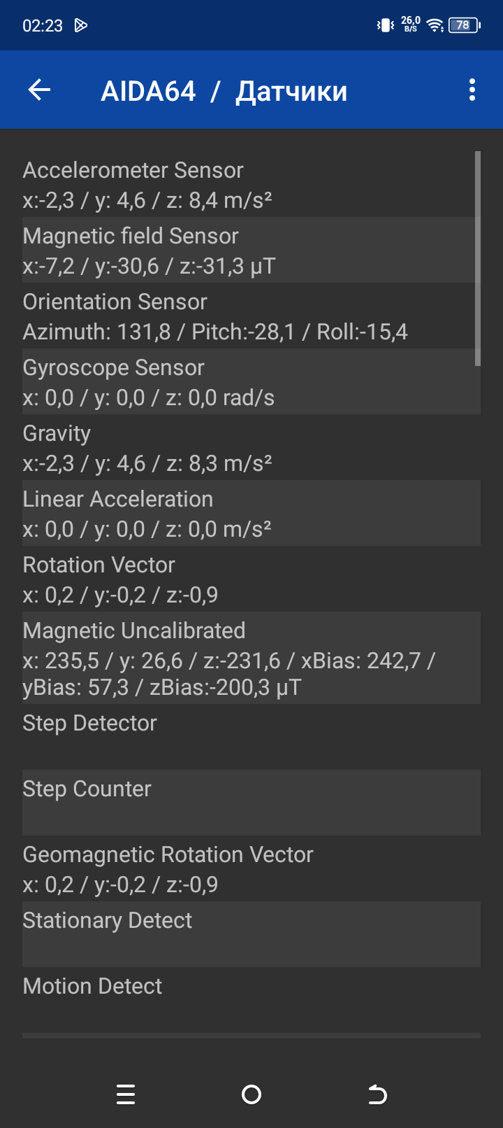 Голос собеседника в динамике не очень громкий, но вполне разборчивый. Вибромотор самый обычный, средний по мощности. Все необходимые встроенные датчики, вплоть до гироскопа, на месте.
