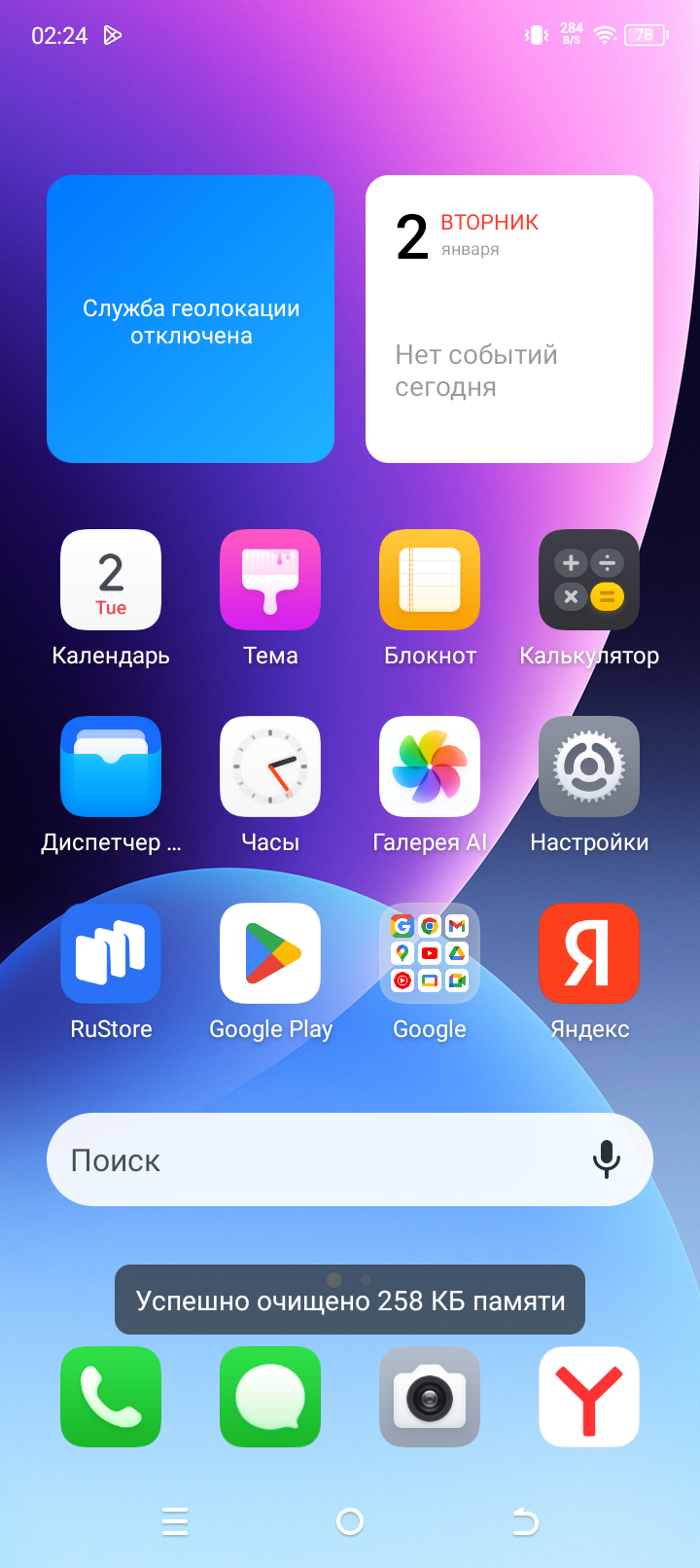 В качестве программной платформы Itel A70 использует ОС Android 13 с собственной оболочкой. В целом, это типичный китайский интерфейс с добротным переводом на русский язык, удаляемыми предустановленными приложениями и небольшим количеством рекламы — в основном, собственных же сервисов. Верхняя шторка разделена на две части в зависимости от места оттягивания. Официальный доступ к магазину и приложениям Google на месте.